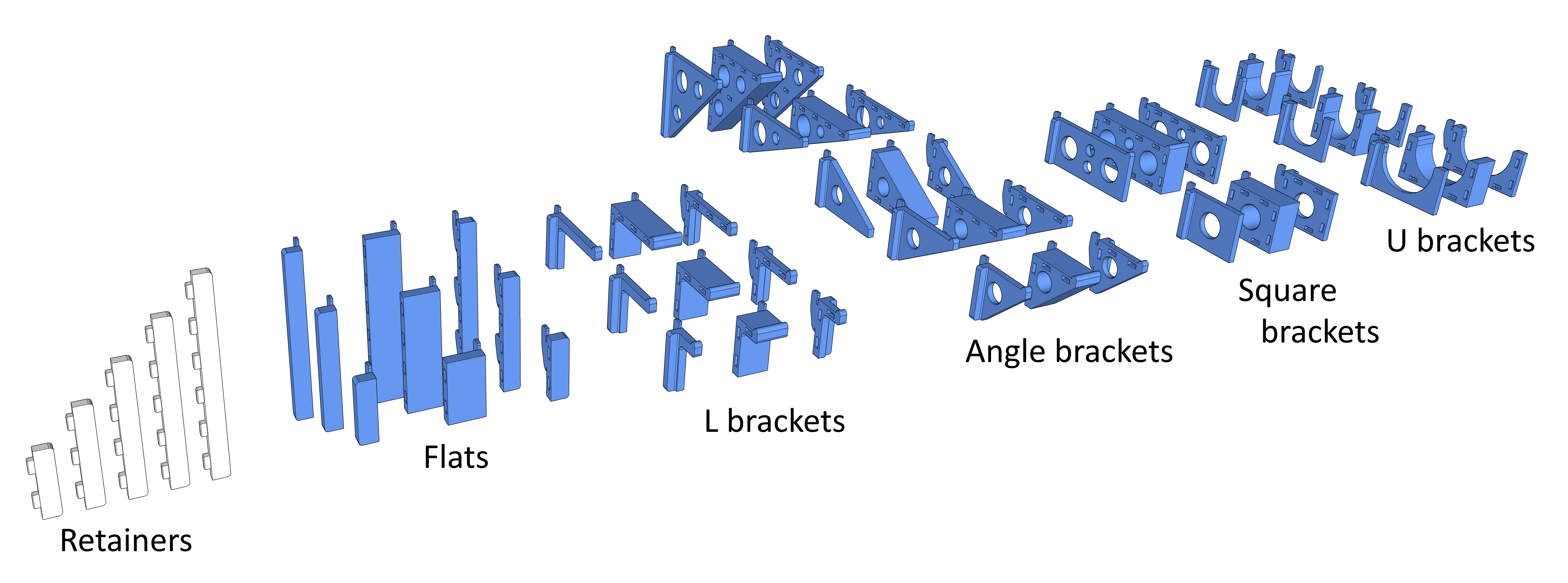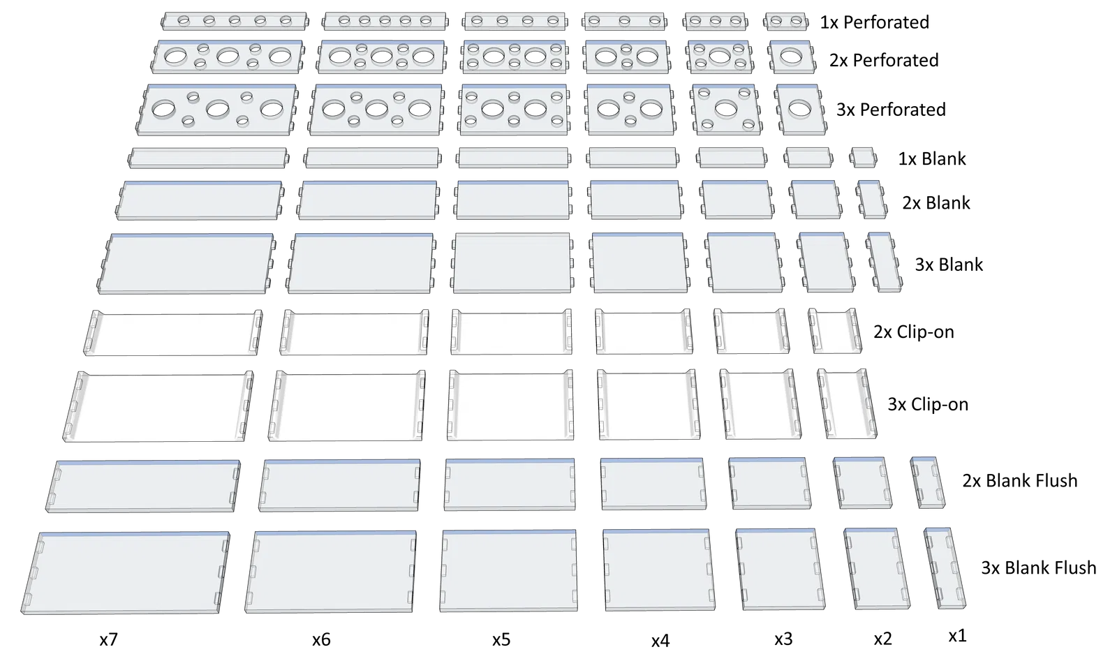 Trường hợp sử dụng đơn giản nhất để tạo một móc treo duy nhất có thể bao gồm một sidepiece cùng với một chốt giữ để giúp giữ bộ phận đúng vị trí trong khe. Hầu hết các trường hợp sử dụng sẽ bao gồm sự kết hợp trái/phải của các sidepieces, với một centerpiece ở giữa để tạo ra một giải pháp treo module với các bộ phận có thể thay thế, lắp ráp nhanh chóng.