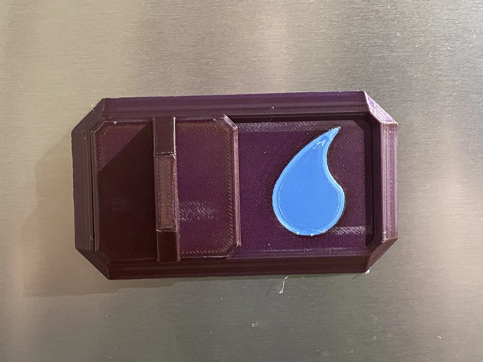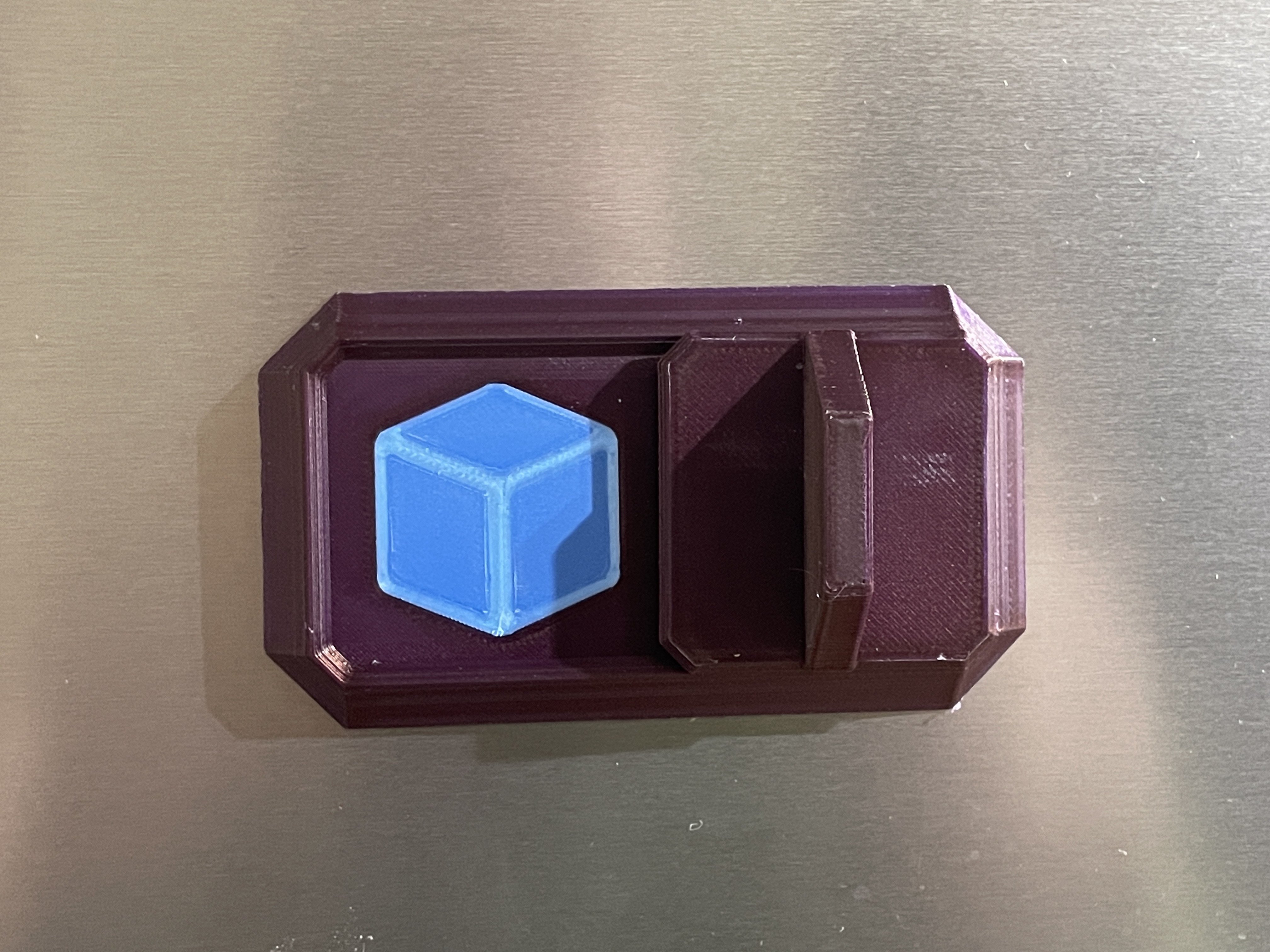 Một bản in siêu đơn giản của một công tắc gạt trượt, có nam châm để hiển thị bát đĩa sạch/bẩn, khay đá đã đầy/cần đổ đầy, hoặc cây đã được tưới nước hay chưa.