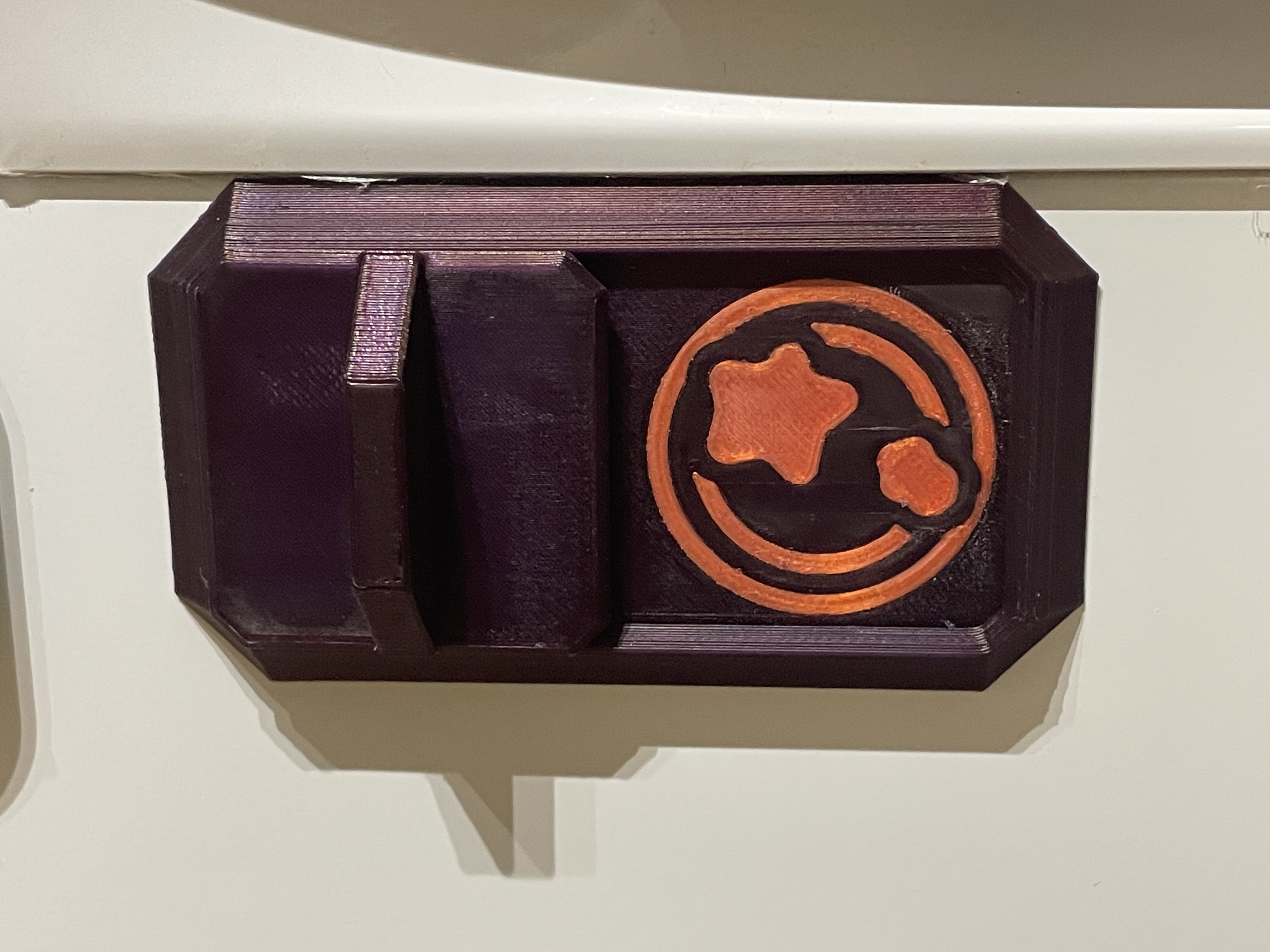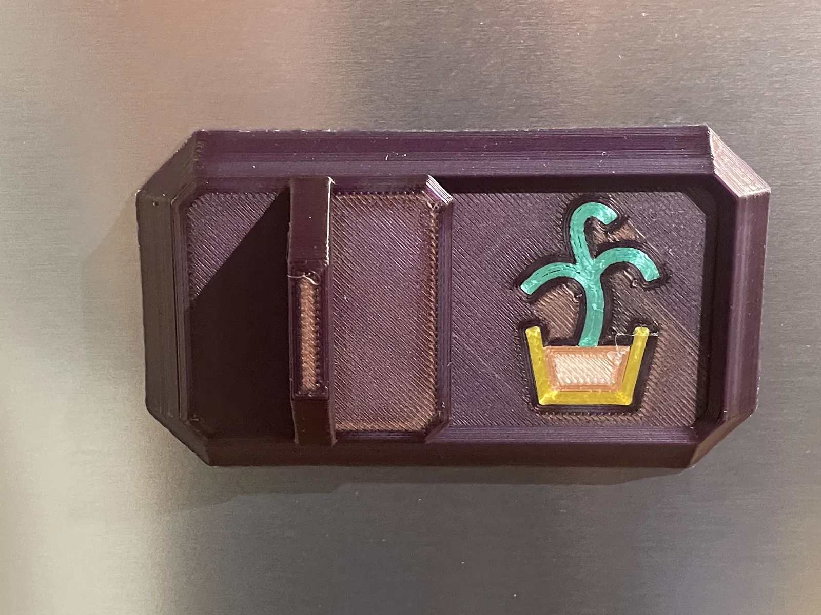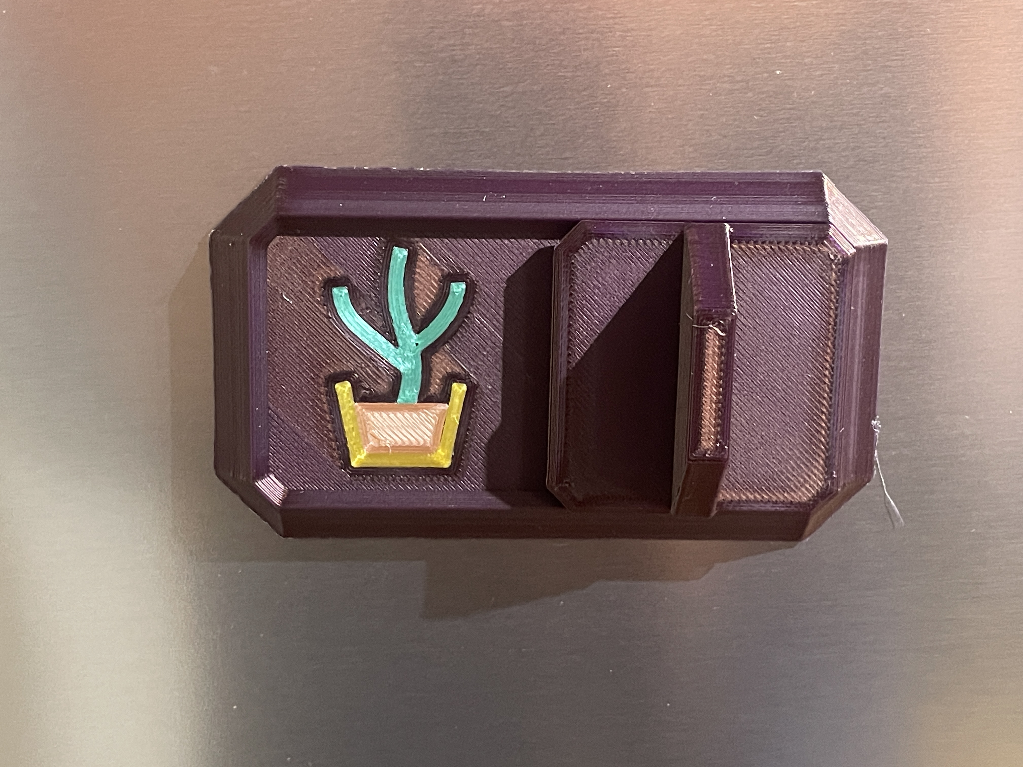 In với mặt nam châm úp xuống và dùng tính năng ironing cho lớp trên cùng. Yêu cầu khoảng 7 lần đổi màu nếu bạn dùng các miếng chèn theo kiểu MMU, hoặc bạn có thể bỏ chúng ra và chỉ cần đổi màu một lần.