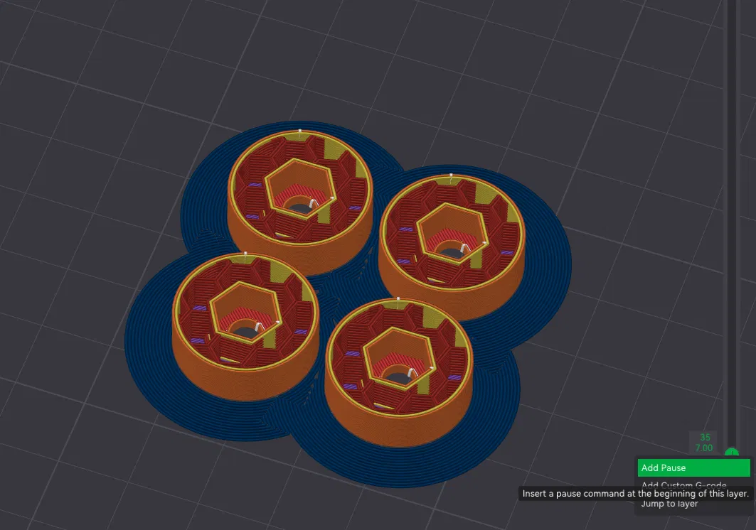 QUY ĐỊNH: thanh được thiết kế để có một bu lông được tích hợp bên trong. Vì vậy, trước khi in thanh, vui lòng tắt hỗ trợ cho thanh và đặt tạm dừng (tự động hoặc thủ công) ngay trước khi in lớp đỉnh đầu tiên của lỗ bu lông. Sau khi máy tạm dừng, hãy chèn bu lông vào lỗ của thanh và tiếp tục. Xem hình ảnh cuối để biết thêm thông tin. Đừng ngại liên hệ với tôi nếu bạn không rõ.