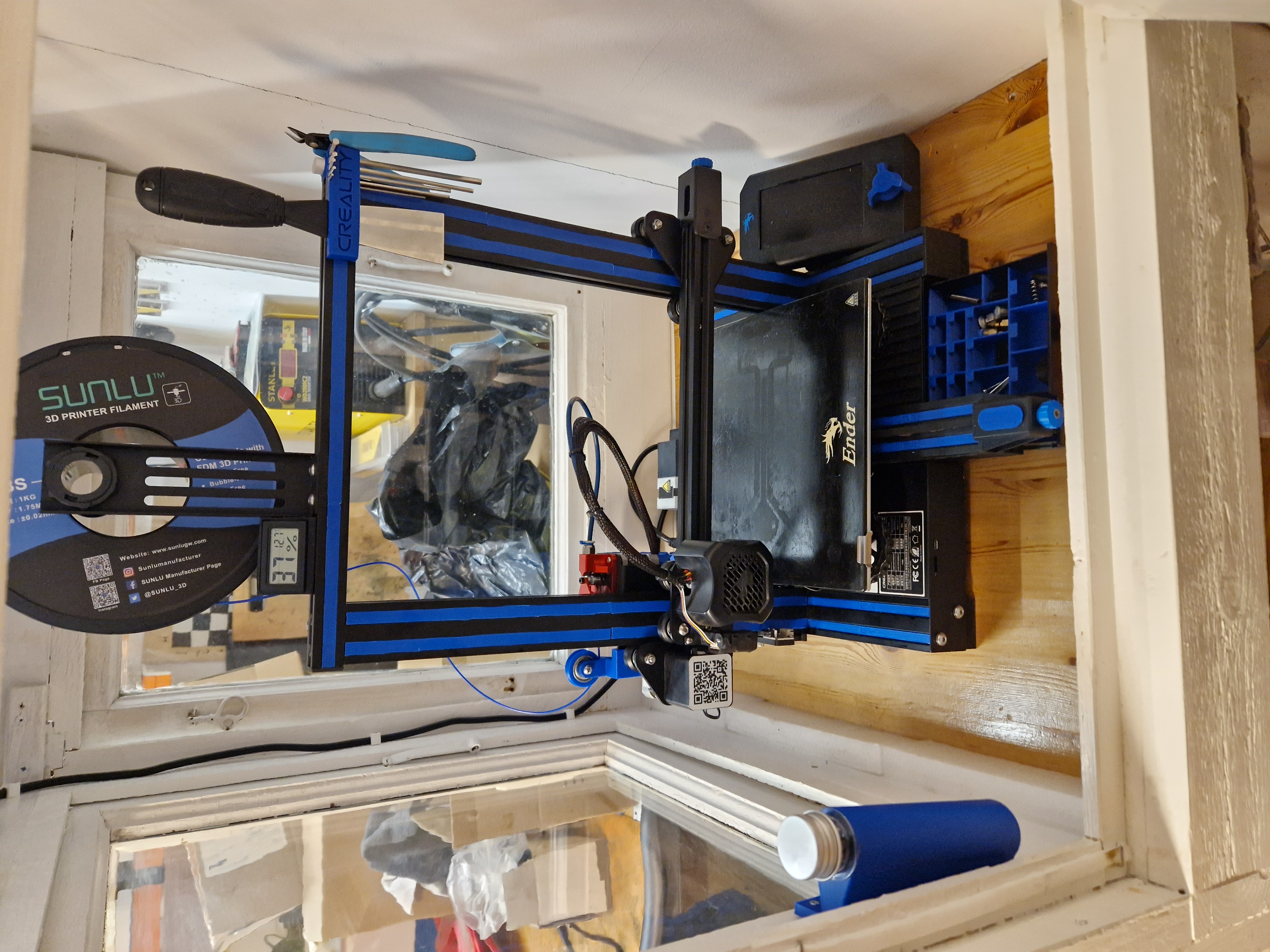 Tôi in cái của tôi bằng ABS màu xanh Sunlu vì lúc đó tôi đang xài sợi đó cho mấy cái đồ độ máy in 3D của tôi, nhưng mà xài vật liệu nào cũng được hết á. Tôi in trên máy Ender 3 V2.
