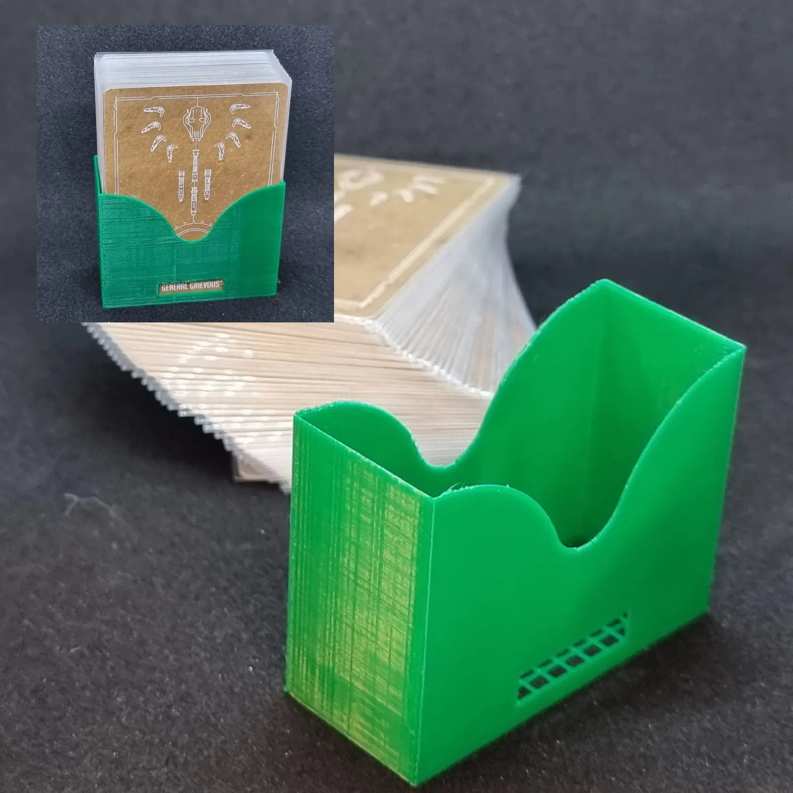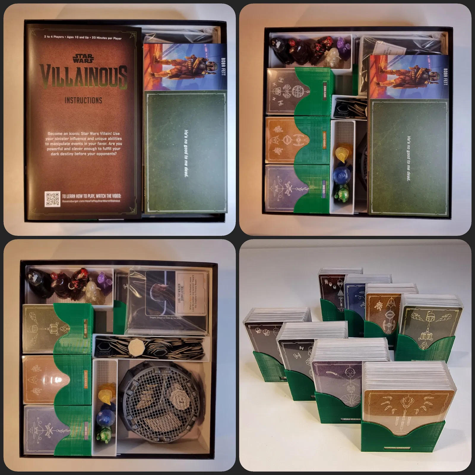 Bộ nắp và hộp đựng giúp sắp xếp gọn gàng các thành phần từ trò chơi Star Wars Villainous và bản mở rộng. Nắp đậy khít, giữ token không rơi. Mỗi bộ bài có hộp riêng, dễ xem tên. Khay đựng token phụ và quân cờ di chuyển. Hoạt động tốt với thẻ có bọc bảo vệ.