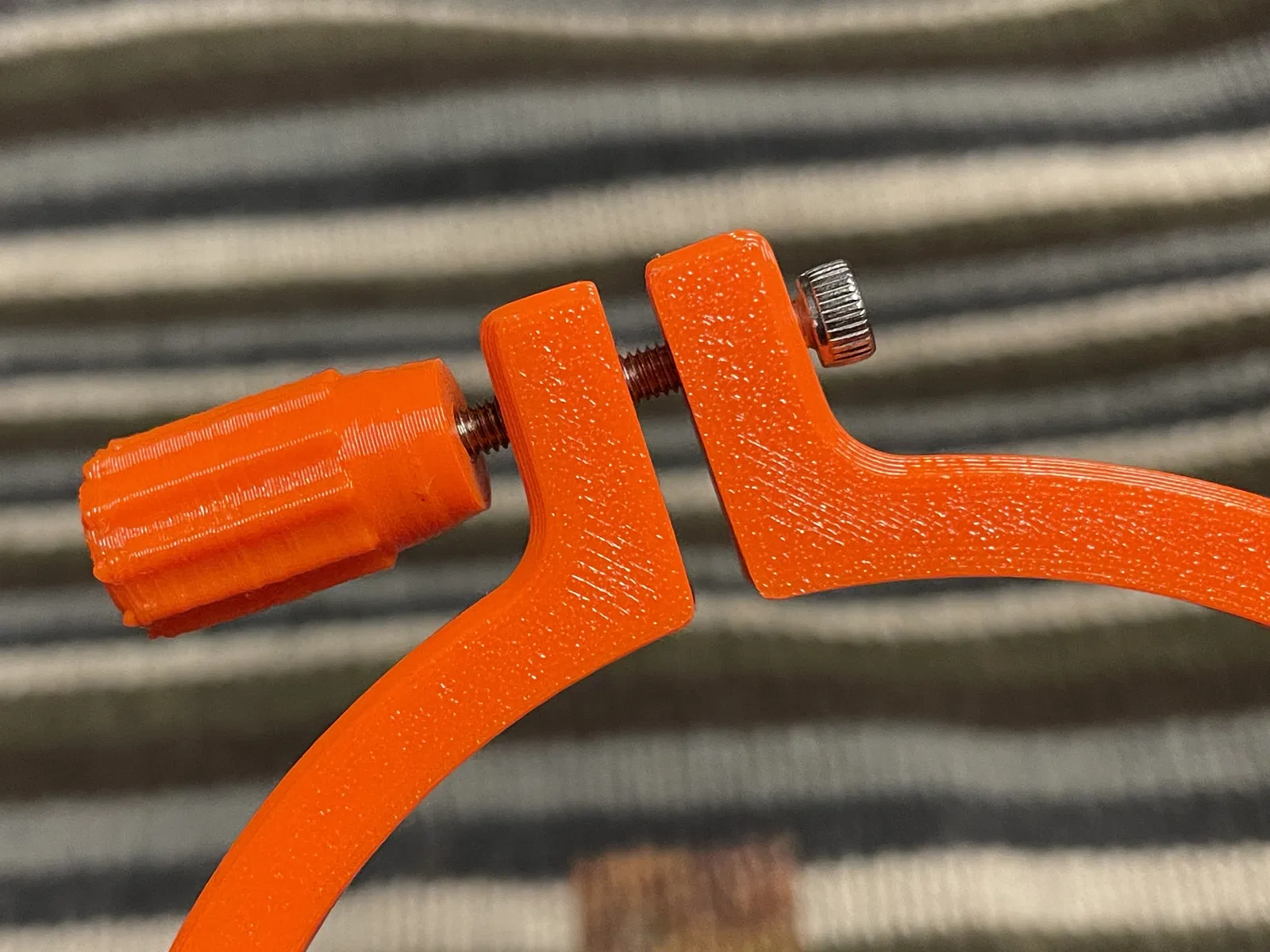 Xin lưu ý rằng mô hình này nên được cắt lát với các điểm dừng ở 8.2mm (lớp 41 cho chiều cao lớp .2mm) và 17.6mm (lớp 88). Các điểm dừng này sẽ cho phép bạn chèn các đai ốc lục giác giữ cho khung và núm xoay. Tôi đã sử dụng các đai ốc lục giác M3 dự phòng từ bản dựng Prusa có kích thước khoảng 6mm trên mỗi mặt phẳng. Một vít 30mm được ren hoàn toàn dọc theo chiều dài mang lại chức năng khá tốt cho khung, nhưng nó được thiết kế để chứa các vít dài hơn và ngắn hơn một chút, tùy thuộc vào những gì bạn có. Tôi đề nghị bạn nới lỏng vít một chút trong khung và sử dụng núm xoay để siết chặt toàn bộ khi bạn đã đặt vải vào đó (xem ảnh).