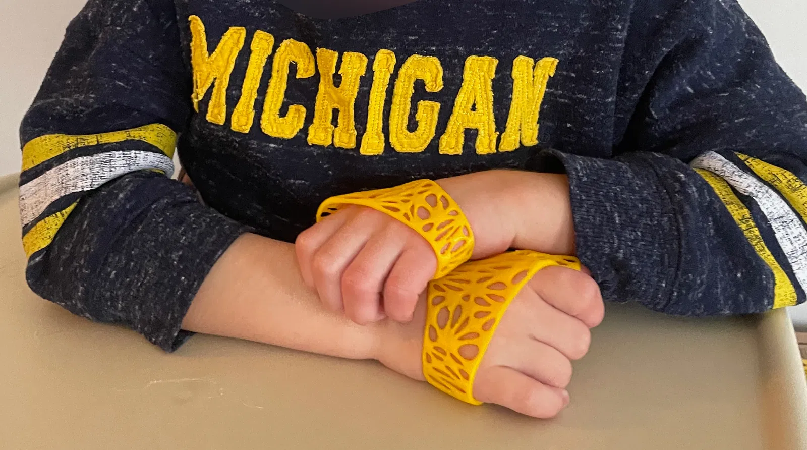 Con bé cháu gái tôi có Nhu cầu Đặc biệt và nó hay mút/cắn ngón tay cái. Cái "guard" này cố gắng để giảm bớt sự hao mòn cho ngón tay cái của nó. Tôi đã in bằng TPU Cheetah NinjaTec 95A. Tôi có dùng support và raft chỉ cho vài lớp đầu tiên (để đỡ phần cong phía dưới ở cổ tay).