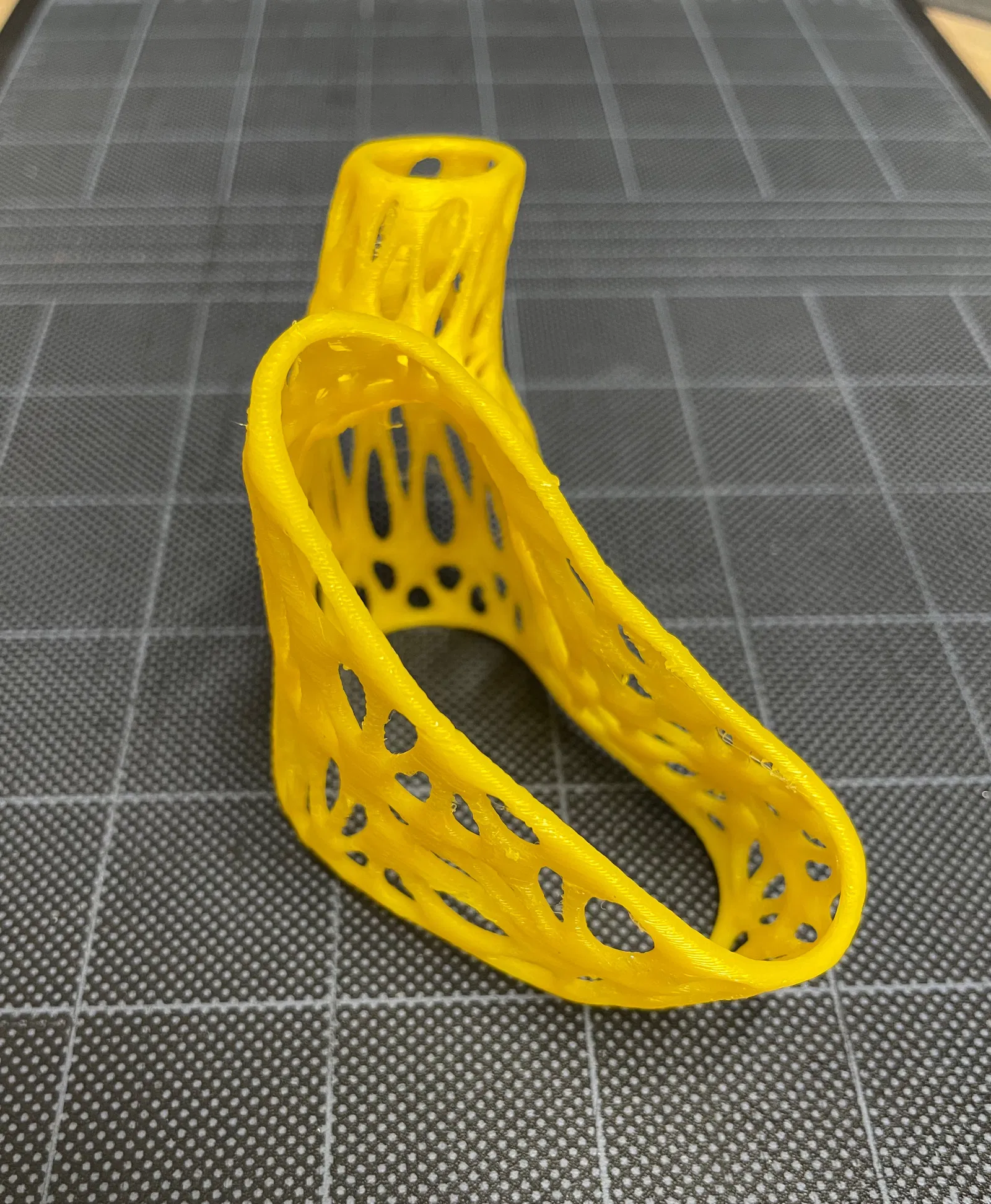 Họa tiết Voronoi được sử dụng cho phép cấu trúc, thoáng khí và một chút co giãn để vừa vặn xung quanh phần rộng nhất của bàn tay mà không bị quá lỏng.
