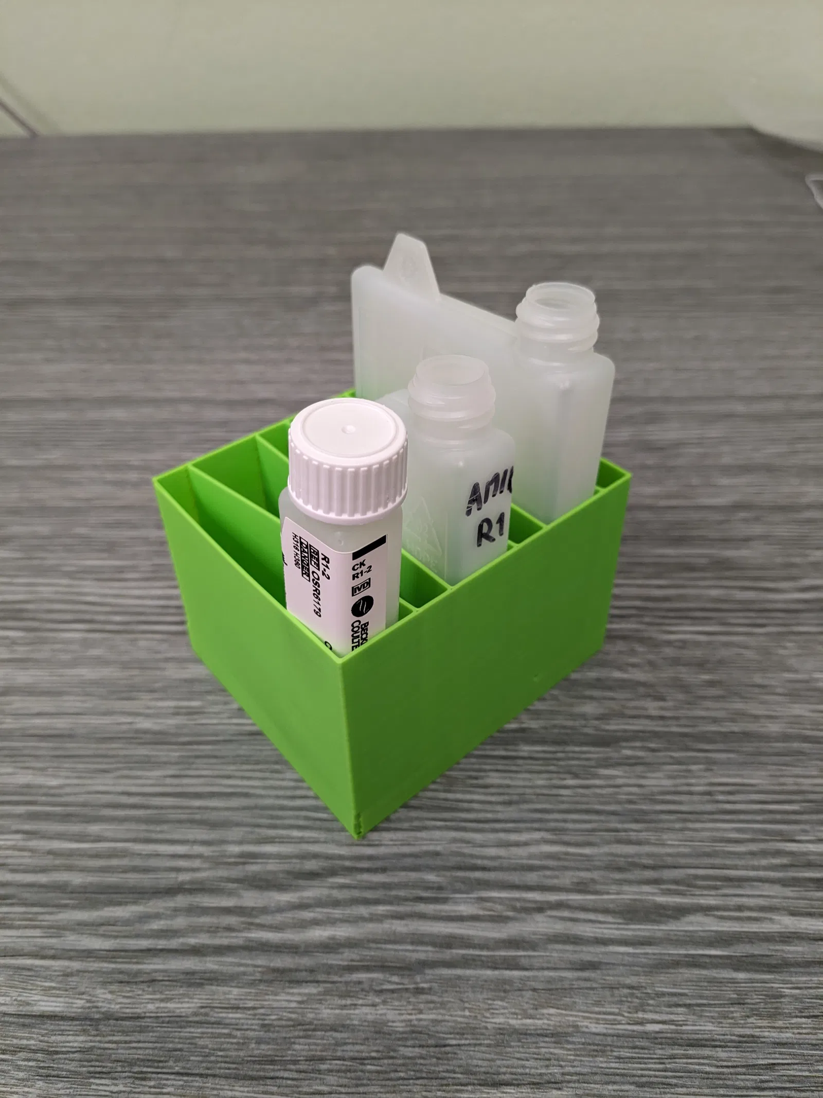 Chân đế chai thuốc thử Beckman Coulter dùng cho các hệ thống AU hoặc DxC AU. Có thể để được chai 60, 30 và 15 ml. Thiết kế đơn giản, nhỏ gọn, giúp sắp xếp chai thuốc thử gọn gàng trong phòng thí nghiệm.