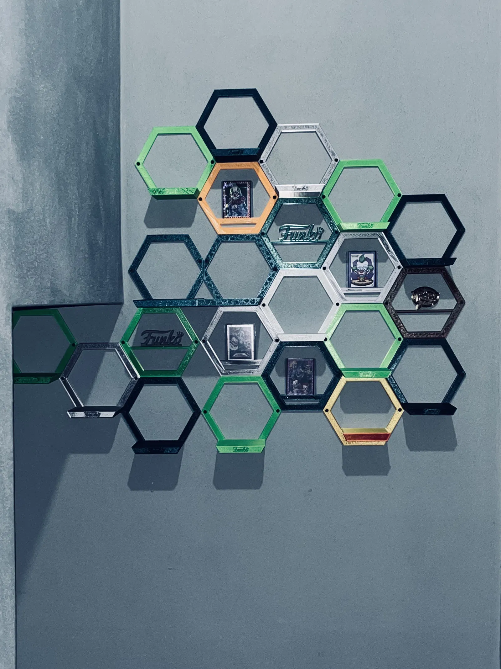 Mẫu in kệ lục giác giúp bạn trưng bày Funko POP, Funko Soda, và Card. Có kệ lớn, kệ nhỏ và các chi tiết trang trí để tạo bộ sưu tập độc đáo trên tường. Dễ dàng lắp đặt và tùy chỉnh theo ý thích.