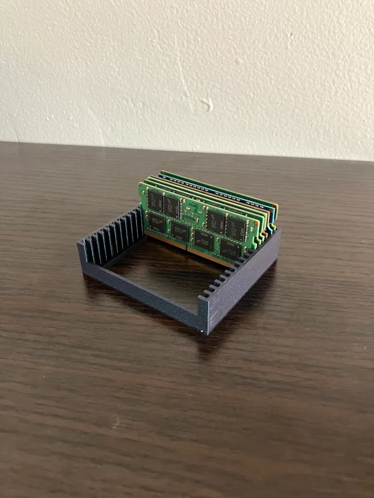 Khay đựng RAM laptop, được thiết kế để phù hợp với nhiều loại RAM khác nhau. Nếu bạn gặp vấn đề, người đăng có thể tùy chỉnh để khay đa dụng hơn. Khuyến khích in 100% infill và điều chỉnh tốc độ nếu cần.