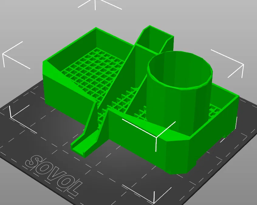 Chỉnh sửa lại rổ lọc rác bồn rửa chén phiên bản v1, có thêm giá đỡ hình trụ để giữ cọ rửa chén, giúp việc dọn rửa chén bát trở nên tiện lợi và gọn gàng hơn. Sản phẩm được làm từ nhựa PLA, cho độ bền cao, an toàn khi sử dụng trong nhà bếp.