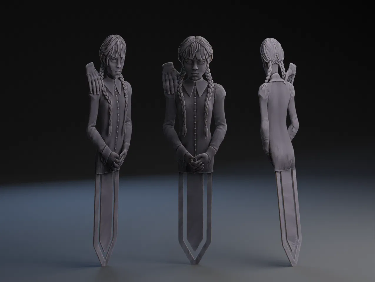 Thiết kế lại dựa trên "Wednesday Addams fanart sculpt" (https://skfb.ly/oBwJJ) của Andrewlxlxl99, theo giấy phép Creative Commons Attribution (http://creativecommons.org/licenses/by/4.0/).