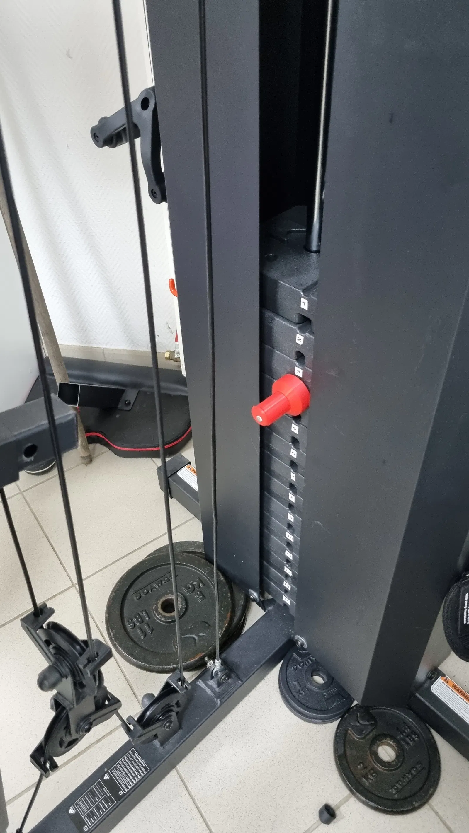 Chốt với đế đỡ để thêm tạ nhẹ hơn cho máy tập tạ khối/khung dẫn hướng.