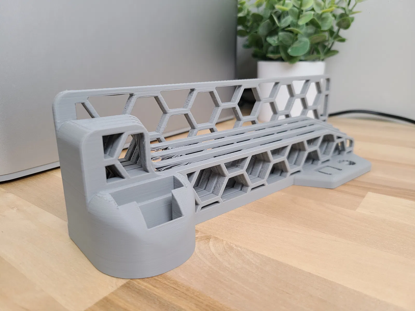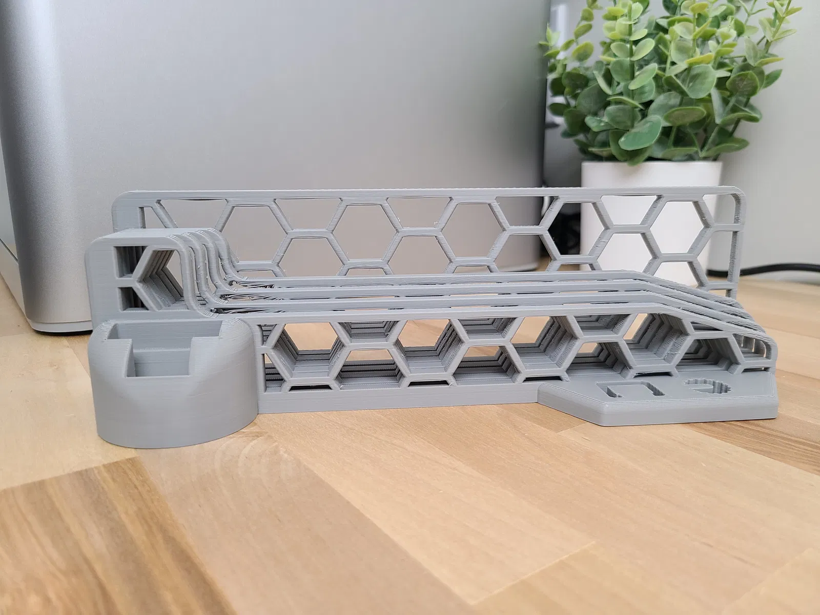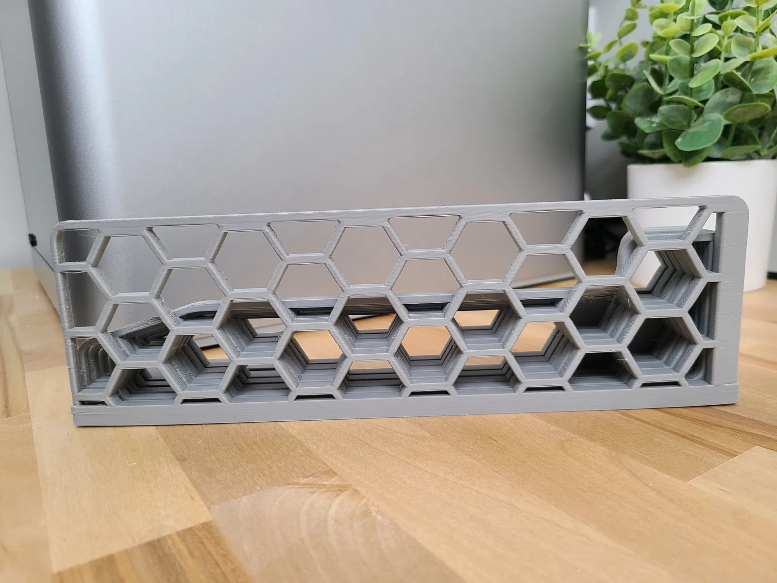 Tôi đã in mẫu này mà không cần support và bật quạt phụ lên tối đa sau khi các lớp đáy hoàn thành. Điều này giúp ngăn chặn hiện tượng chảy võng ở phần bắc cầu của các đỉnh hình lục giác. Vẫn có một chút chảy võng, nhưng không đủ để phải dùng support theo ý kiến của tôi.