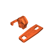 Cái móc thì gắn vô phía sau trước rồi từ từ ấn xuống – nó sẽ khớp vào. Có một lưu ý là cái móc ở phiên bản này nó không đối xứng – cái mặt hướng về phía trước hay phía trên là có ký hiệu "V" ở đầu.