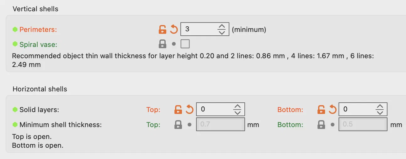 Và để có hiệu ứng tổ ong, bạn cần vào cài đặt và đặt lớp trên cùng và lớp đáy cả hai đều là KHÔNG, đặt mẫu độ đầy thành tổ ong và đặt độ đầy khoảng 10%.
