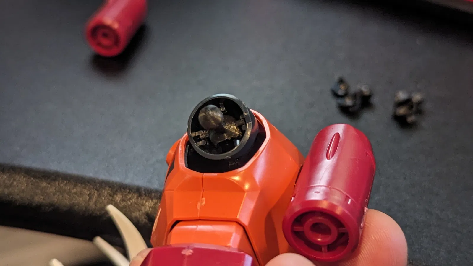 Cái khớp cầu nối vai trên con HG 1/144 Z'GOK của tui nó bị nứt làm đôi rồi, treo tay vô không được.