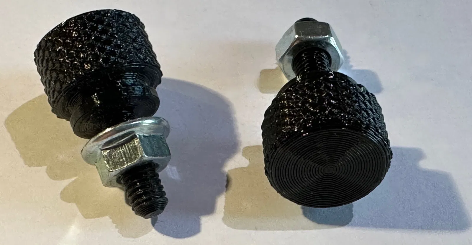 Tay nắm vặn : Vít ren hoa khế ISO M6 - 10, 15 và 20 mm + tệp F3D của tôi (nếu bạn cần kích thước khác). Đã in đơn giản bằng Prusament PETG, đầu phun 0.4, lớp 0.2 và mật độ 20% mà không gặp vấn đề gì. Cũng bao gồm: tệp 3MF mẫu chứa G-Code tùy chỉnh đã cải tiến của tôi cho PETG.