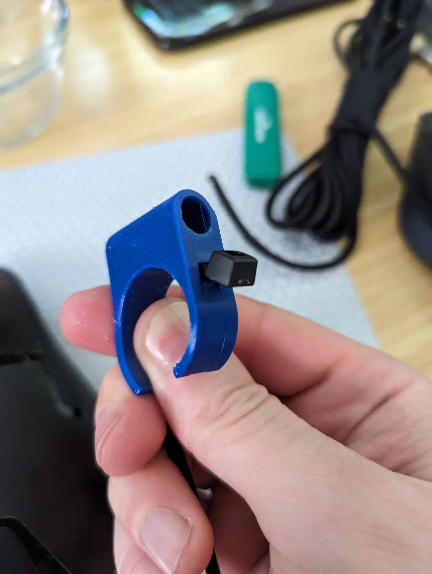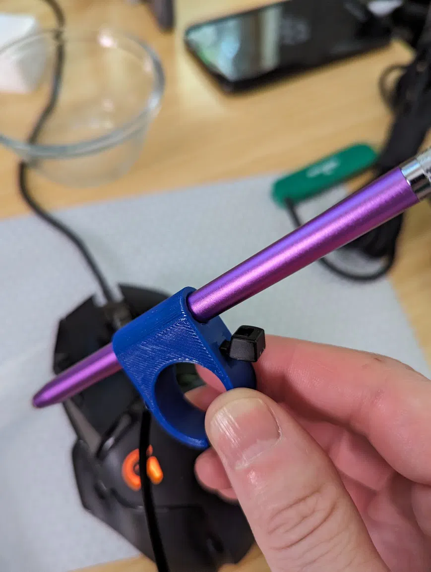 Khuôn kẹp bút cảm ứng gắn ghi đông xe máy hoặc xe đạp, vừa vặn cho bút cảm ứng 8mm. In bằng TPU, dùng dây rút để cố định vào ghi đông.
