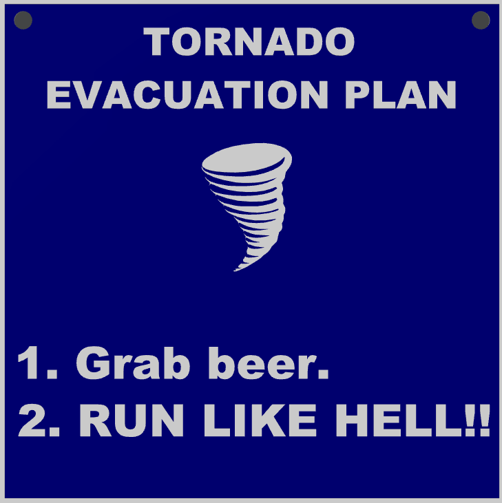 Một kế hoạch sơ tán trong trường hợp có lốc xoáy! Tui thấy cái biển cảnh báo này hay quá nên làm theo cho lốc xoáy luôn nè.
