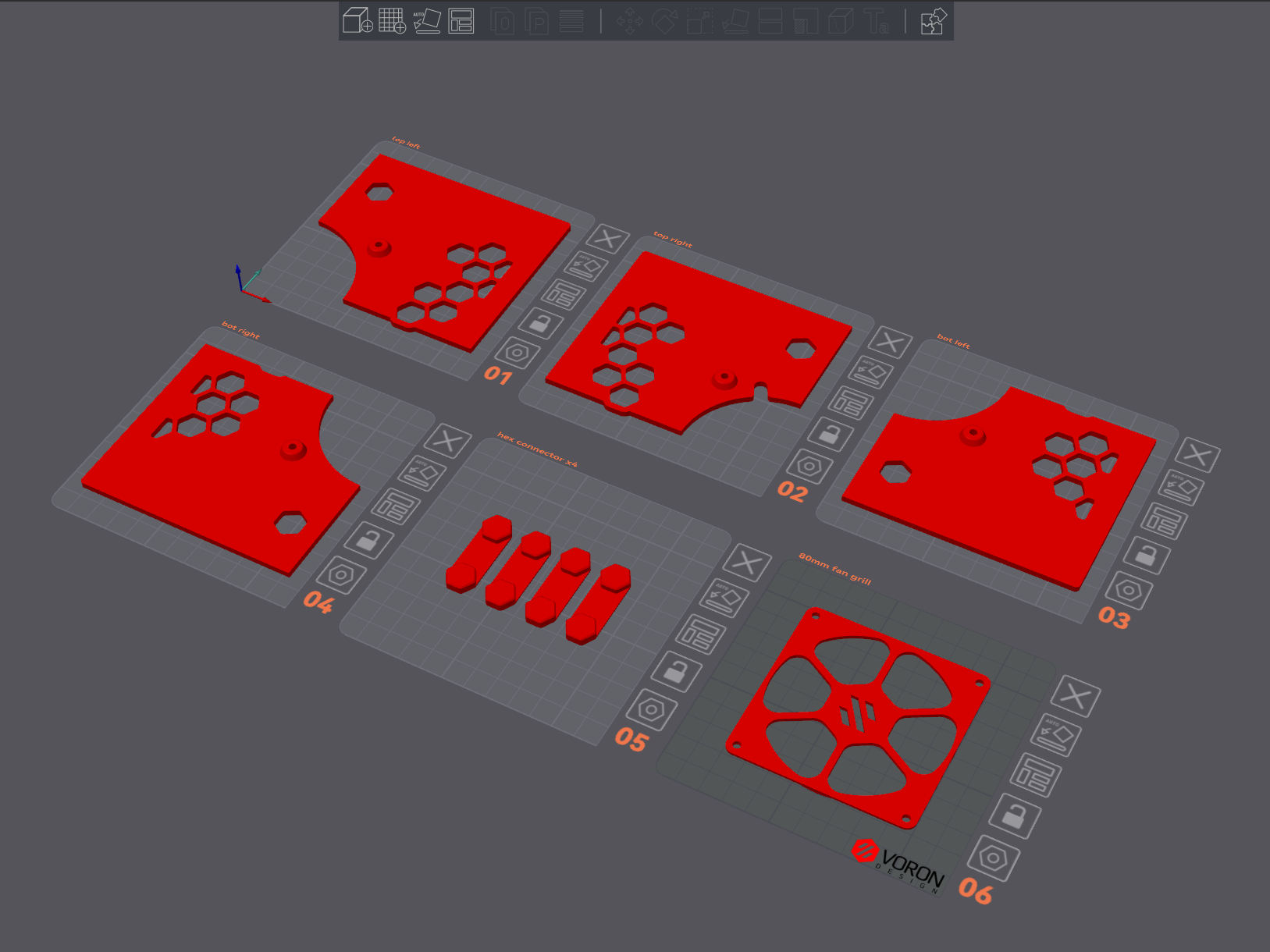 Cái cover quạt lấy cảm hứng từ Voron cho quạt 80mm đã được in và có thể tìm thấy trong file 3mf. Lắp đặt cũng giống như tấm panel zin.