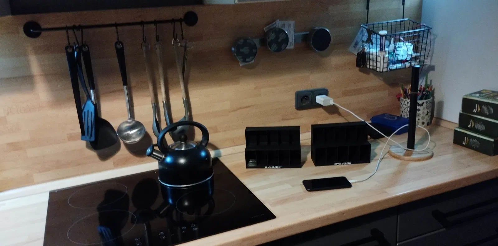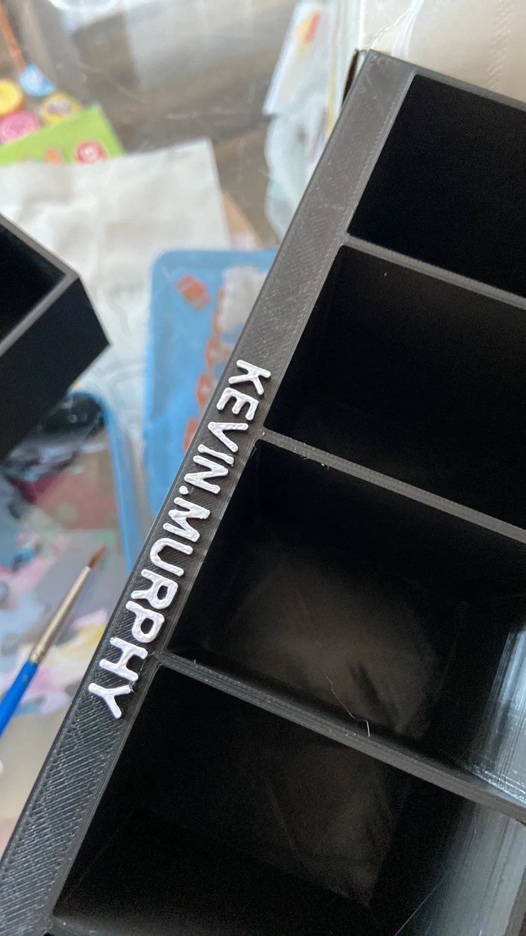 Chào mừng đến với hồ sơ của tôi, nơi có đầy đủ các mô hình và bản thu nhỏ. Tôi có một chiếc kệ đựng đồ hiệu Kevin Murphy dành cho bạn đây. Mẫu này được in không cần hỗ trợ (supports).
