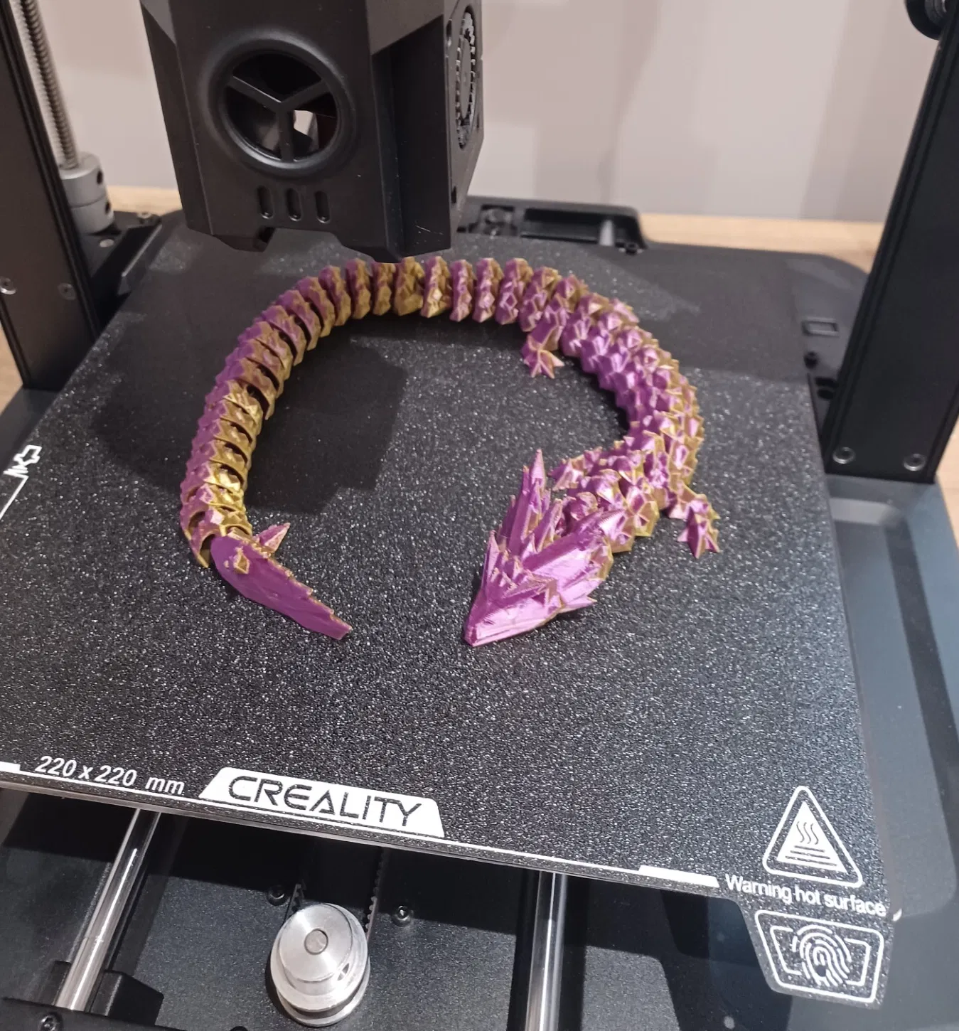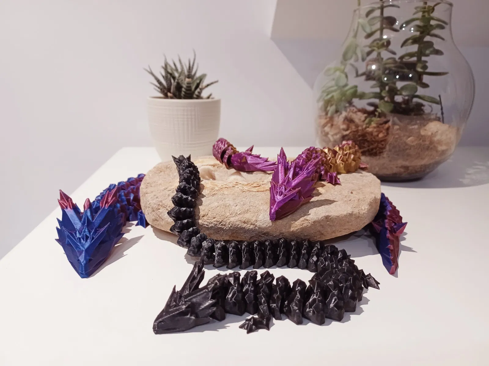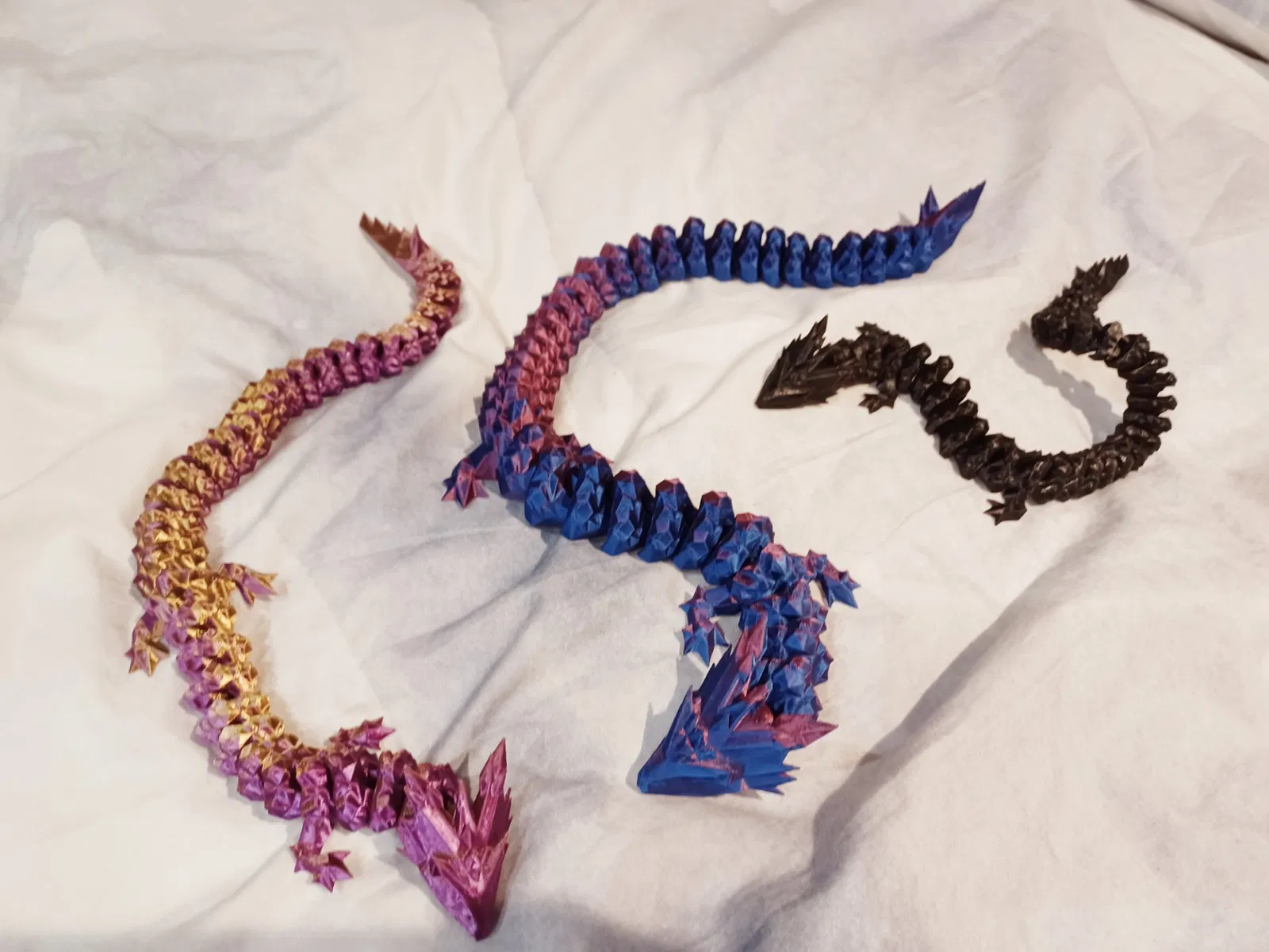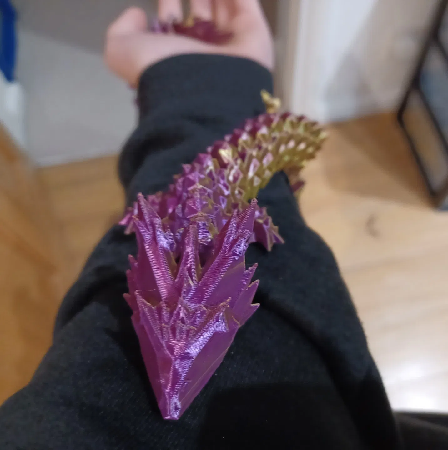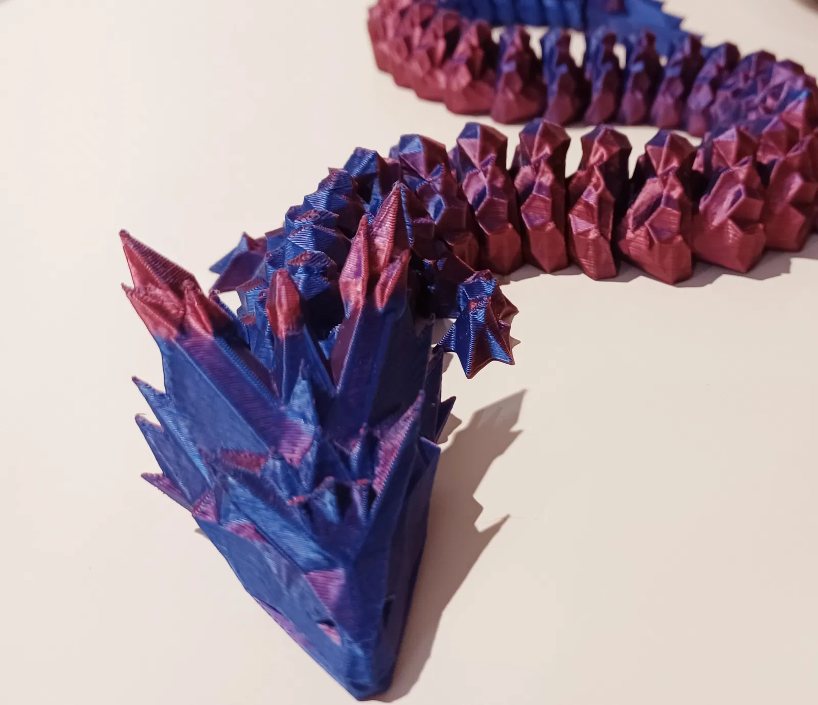 Rồng Pha Lê Khớp Nối này là một thiết kế được tùy chỉnh để trông giống rồng pha lê hơn với phần đầu có hình dạng khác biệt. Đây là một bài test in ấn thú vị, đặc biệt với phần nhô ra của sừng pha lê. In bằng PLA hai màu lụa để có vẻ ngoài huyền ảo, đáng sợ và uy nghi.