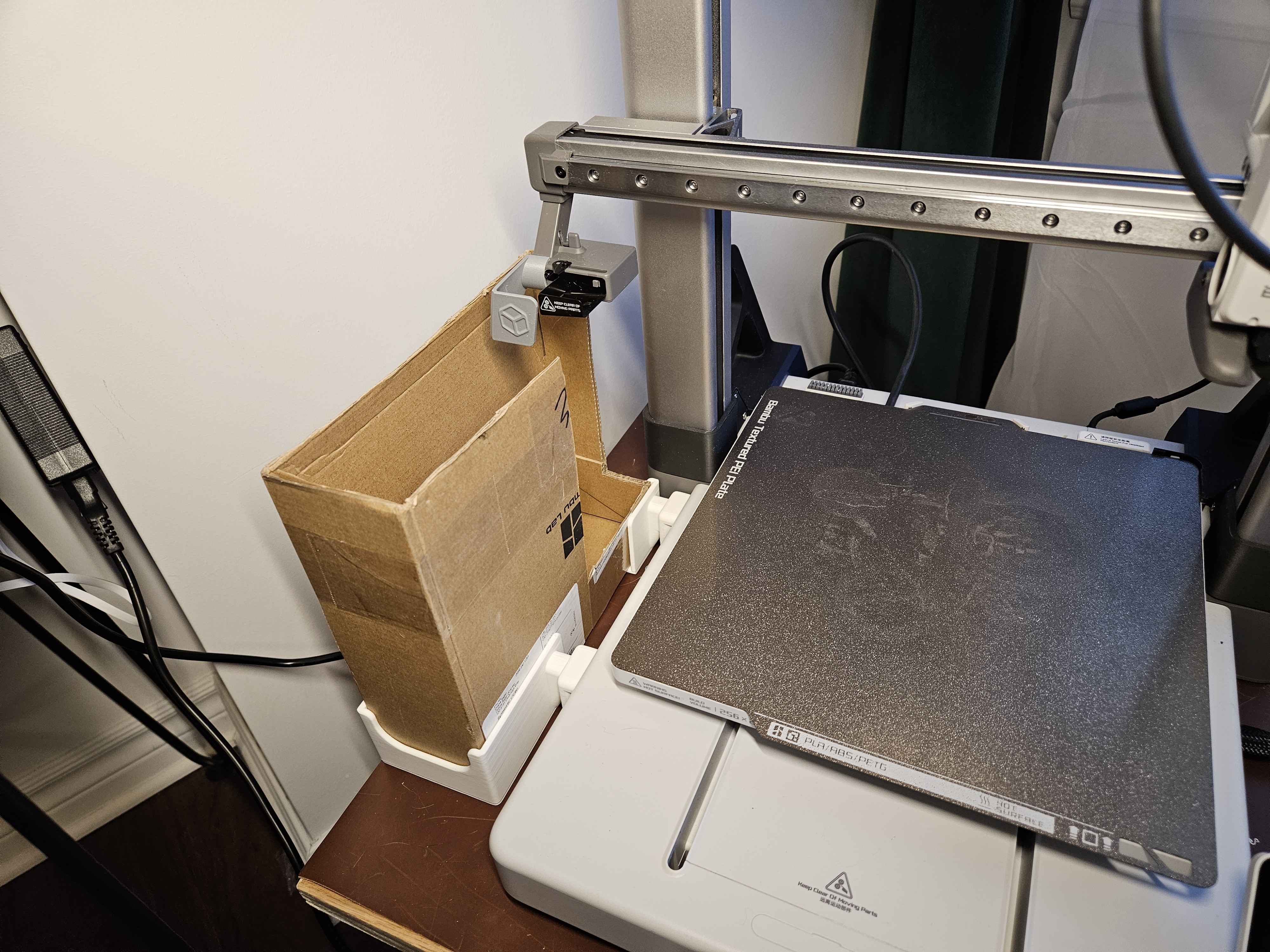 Phần nối dài từ thiết kế A1 mini của thrutheframe. Sử dụng hộp đựng cuộn filament của Bambu Lab để tiết kiệm tối đa filament. Dán nam châm và băng dính VHB để cố định, đồng thời cắt hộp đựng filament theo kích thước yêu cầu.