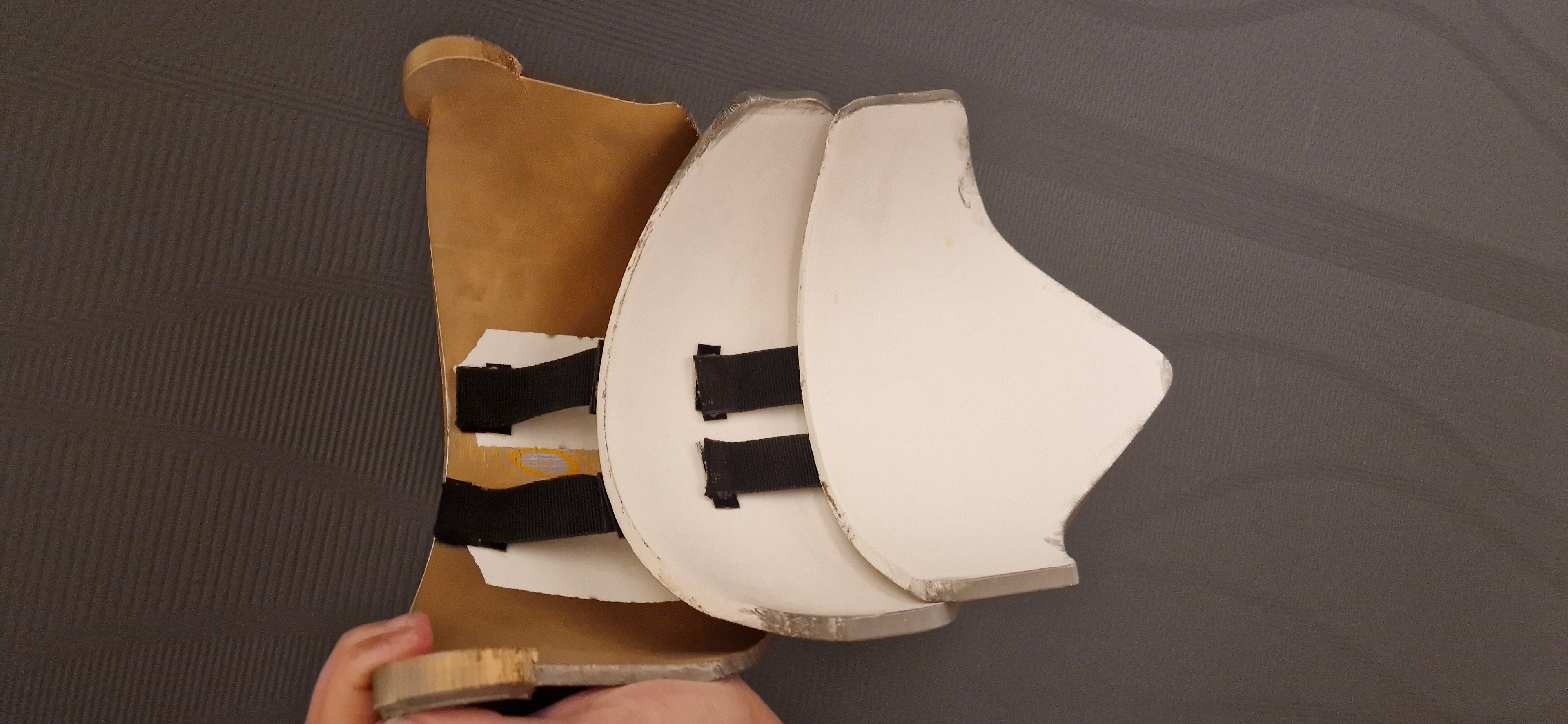3 cái tấm này có thể gắn lại với nhau bằng keo dán dây đeo vào bên trong của cái vỏ lớn hơn và vào bên ngoài của cái nhỏ hơn.