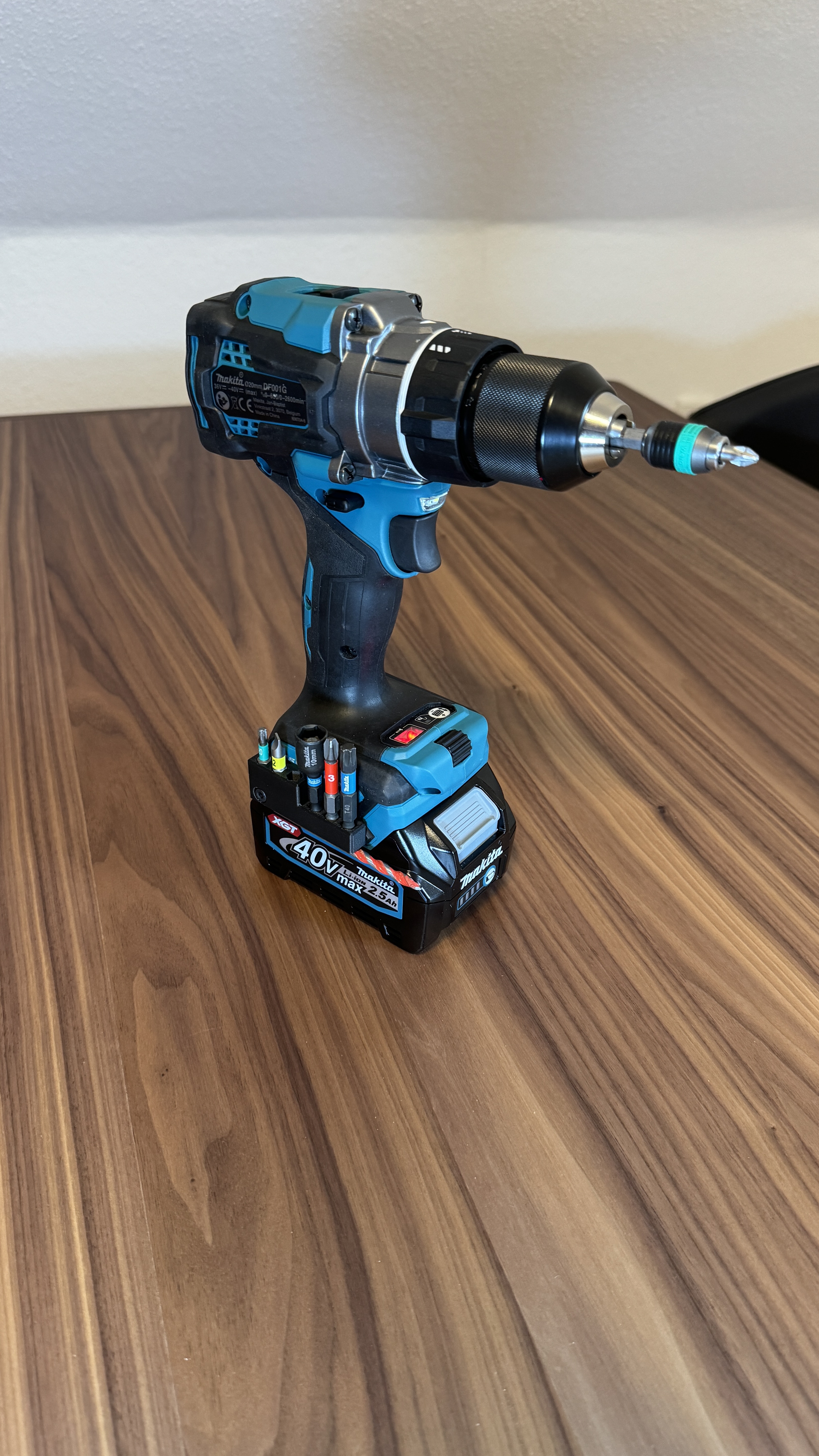 Cái giá đỡ mũi khoan này được thiết kế riêng cho dòng máy khoan Makita XGT 40V max. DF001G/HP001G (hoặc GFD01/GPH01 ở Mỹ). Nó có thể giữ tới 6 mũi khoan lục giác ¼" tiêu chuẩn, cố định bằng nam châm 5x2mm, giúp bạn cất giữ và truy cập mũi khoan một cách tiện lợi và gọn gàng.