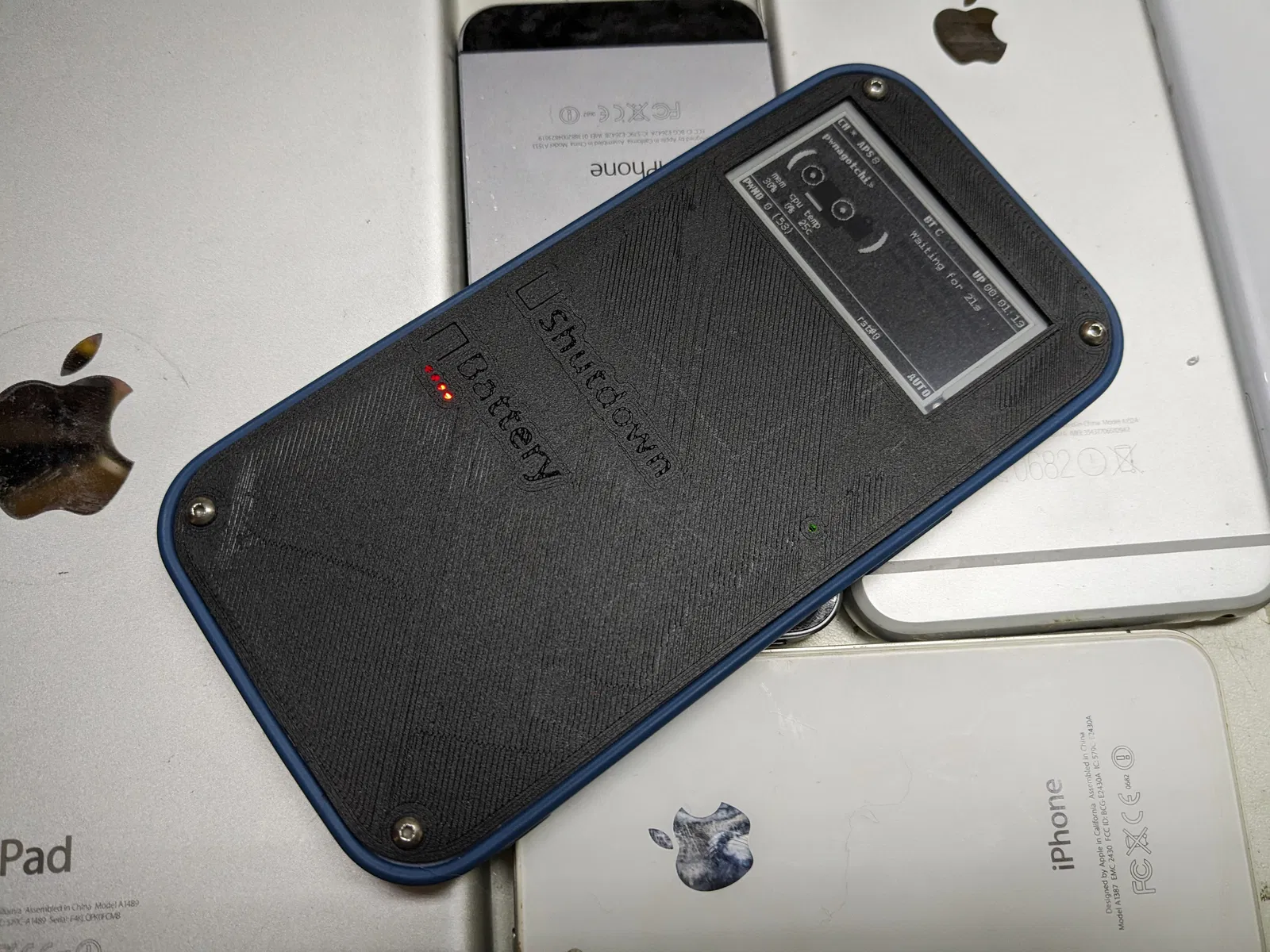 Tui thiết kế cái vỏ cho pwnagotchi, xài màn hình e ink 2.13 inch, bo mạch powerbank và pin Raspberry Pi Zero W 2, tất cả đều nằm gọn trong cái vỏ iPhone 13.