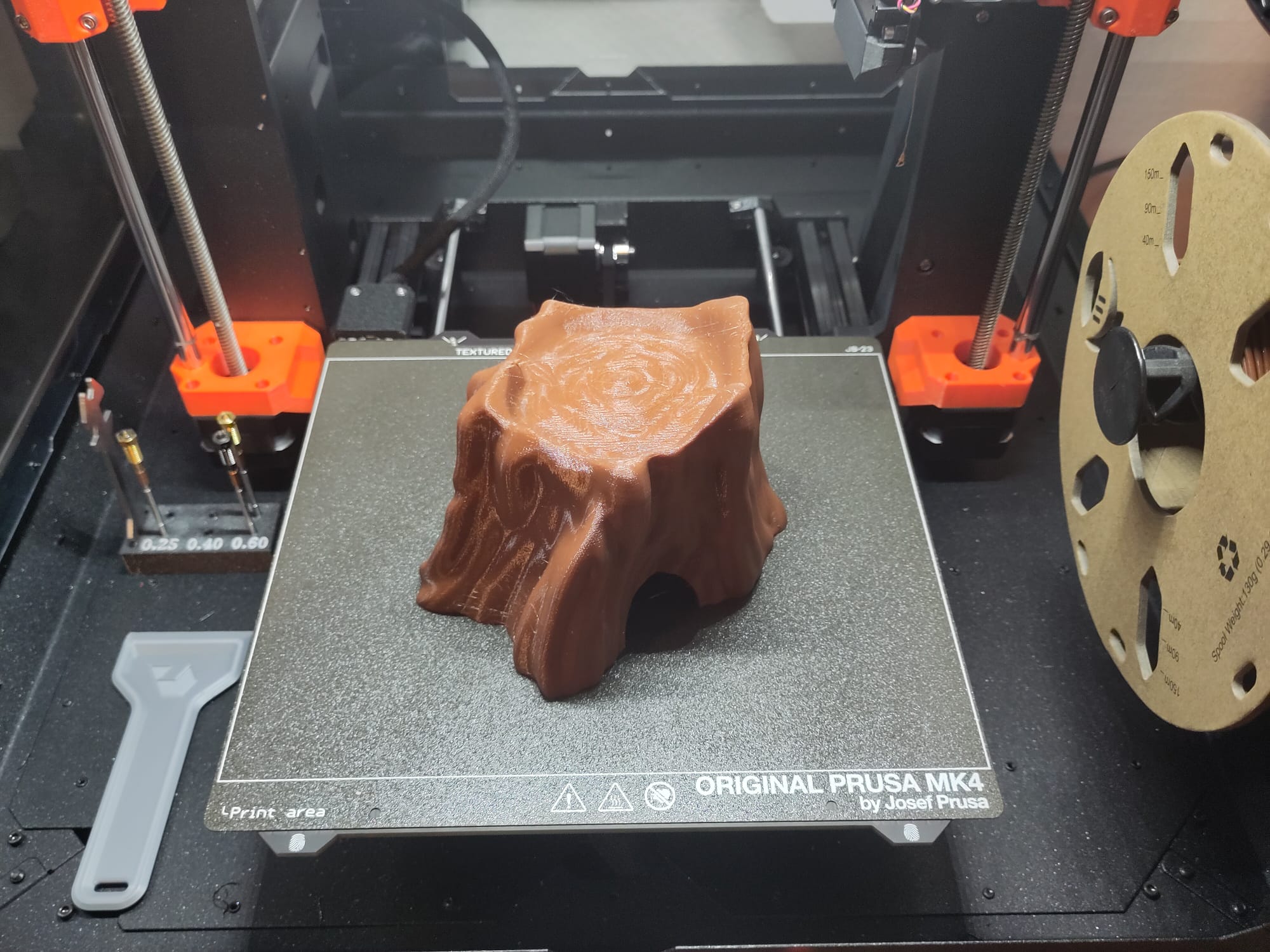 Tạo hang cây mục rỗng ruột từ bản gốc, thích hợp làm hang cho rắn cưng. Model này cần support và được chỉnh sửa lối vào bằng PrusaSlicer, không có file STL riêng.