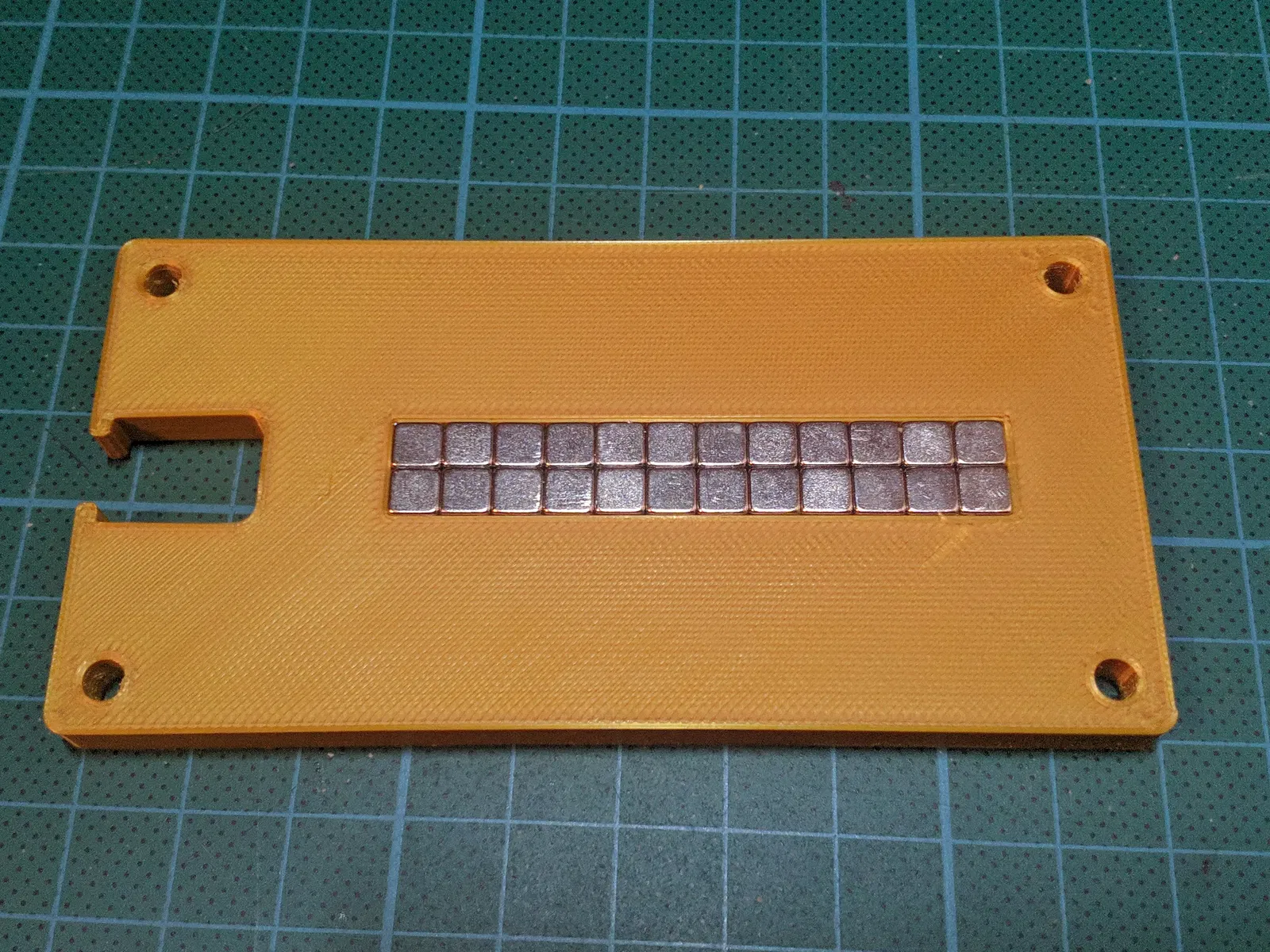 Cái khe để nam châm là 60x10x5mm. Tôi nhét vô 24 cục nam châm 5x5x5. Giữ súng ngon lành mà rút ra cũng dễ lắm.