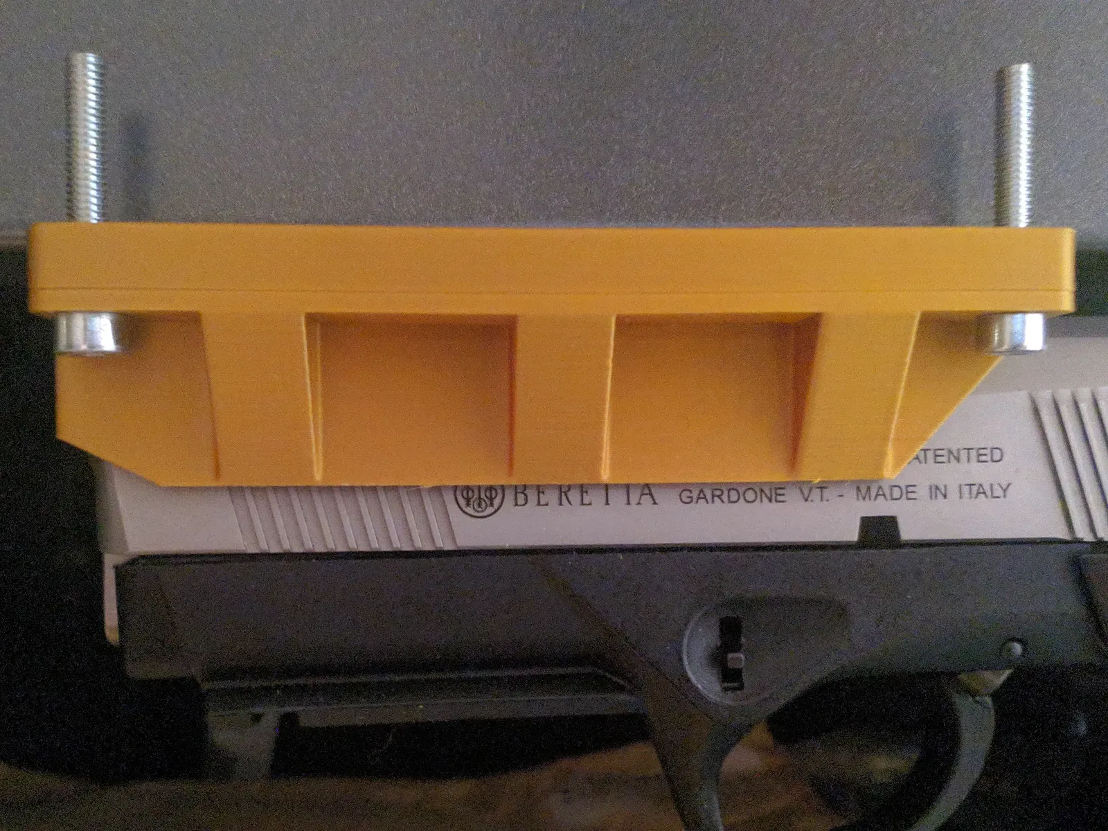 Giá đỡ nam châm nhanh chóng cho Beretta PX4 Storm. Tự làm từ đầu dựa trên thiết kế của utahmini, cho phép bạn đẩy súng về phía trước và giữ phần trượt cố định. Khe nam châm 60x10x5mm với 24 cục nam châm 5x5x5, giữ súng chắc chắn nhưng dễ tháo. In bằng PLA với ốc M4, không cần support.