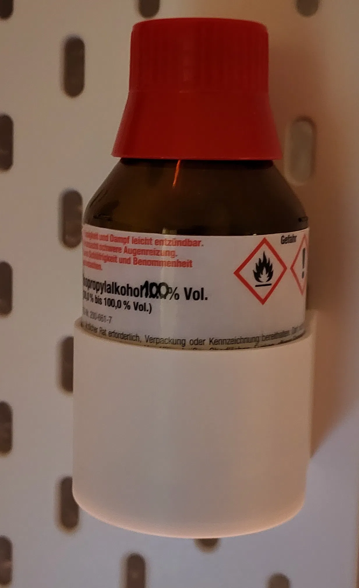 Giá đỡ chai IKEA Skadis này có đường kính trong 51,5mm, được thiết kế để gắn vào bảng pegboard Skadis. Lý tưởng để đựng các chai dung dịch như cồn isopropyl.