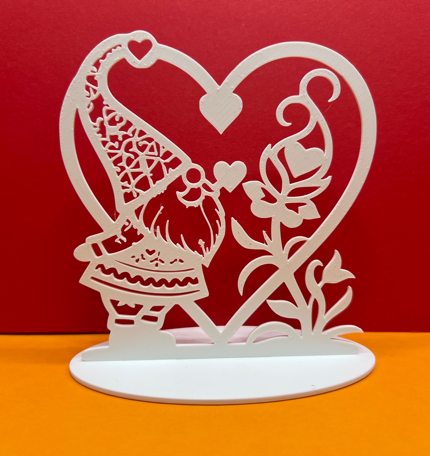 Chú lùn đang yêu với trái tim, thích hợp để trưng bày. Được in với các thông số PrusaSlicer tiêu chuẩn cho PLA, in chậm sẽ giúp cải thiện chất lượng. Thông số in: vòi phun 0.4mm, chiều cao lớp 0.2, infill 100%. Có thể in bằng PLA hoặc PETG.