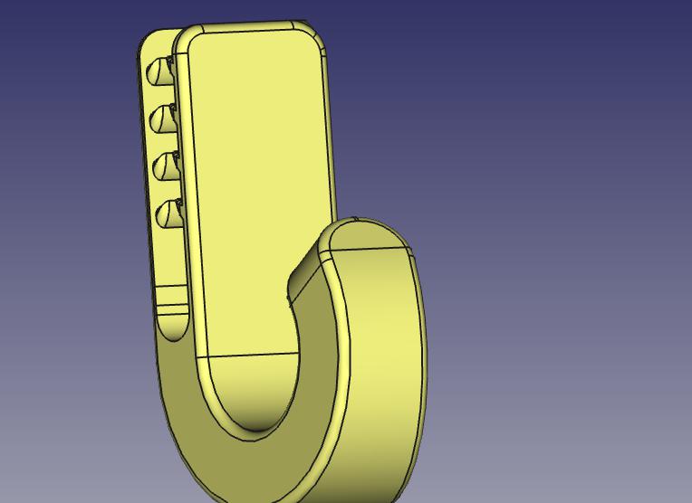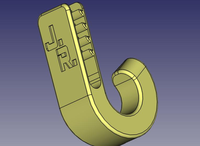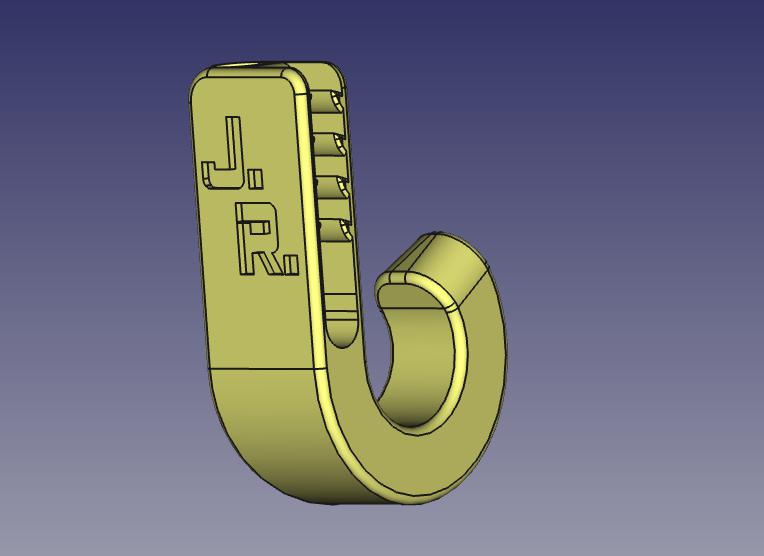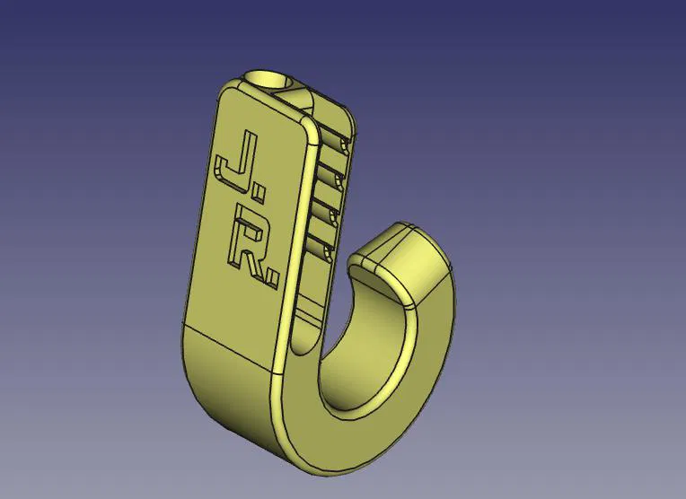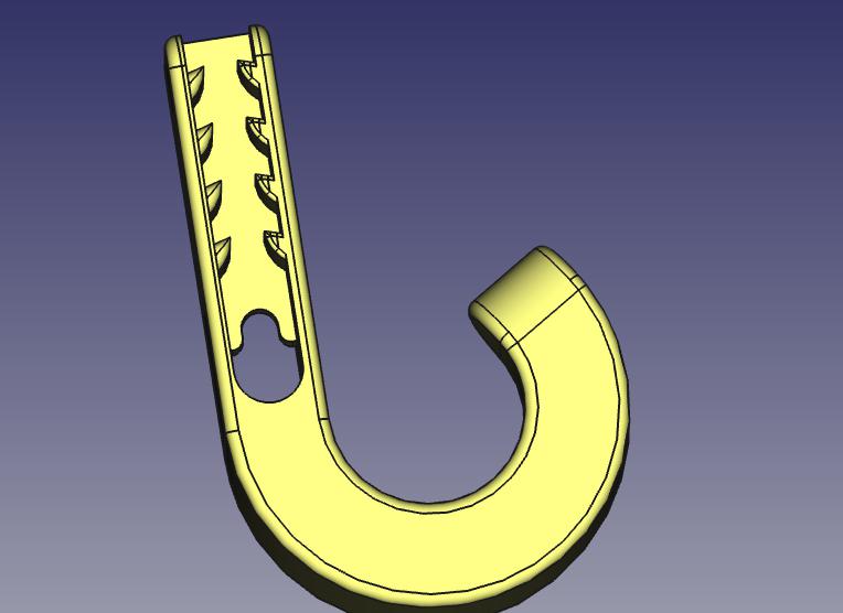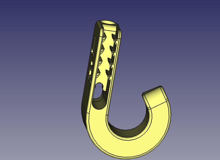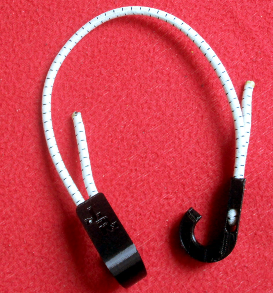 Móc dây thun căng D 17 cho dây thun 6 mm, có thể điều chỉnh độ dài bằng cách kéo ra khỏi rãnh răng cưa và khóa lại. Dây thun 6mm có bán ở các cửa hàng vật liệu xây dựng, cắt và làm chảy các đầu dây để tránh tưa. In bằng PLA với độ điền đầy 30-100%. Đã thử nghiệm và hoạt động tốt.
