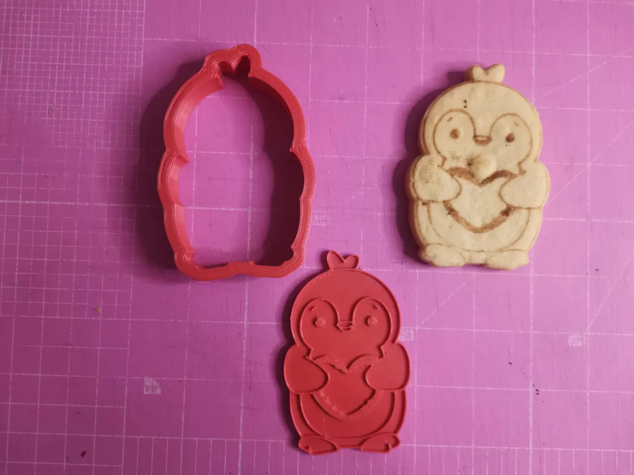 Mô hình này là một dụng cụ cắt bánh quy hình chim cánh cụt đang yêu. Để sử dụng, bạn nên đổ đầy 30% khuôn để nó cắt bột bánh. Tôi đề xuất độ dày 15mm cho phần nhấn, và có thể điều chỉnh độ dày ruột khuôn từ 20% trở xuống tùy theo nhu cầu.