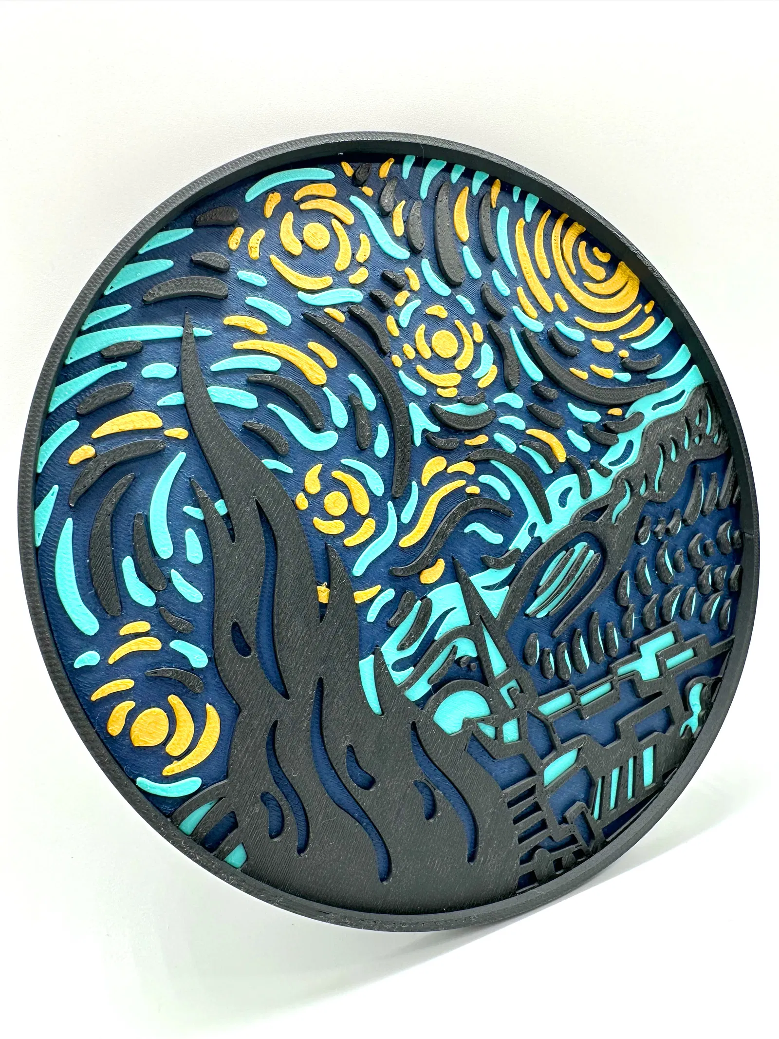 Tác phẩm điêu khắc 3D lấy cảm hứng từ bức tranh "Đêm đầy sao" nổi tiếng của Vincent van Gogh, được thiết kế bởi @entroisdimensions và tối ưu hóa cho Bambu Lab. File 3MF yêu cầu Bambu Studio để sử dụng.