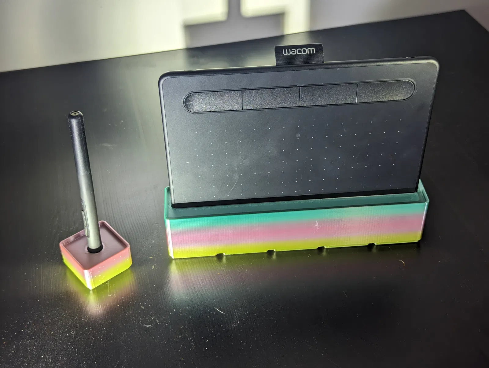 Cặp đế Gridfinity này là giải pháp lưu trữ hoàn hảo cho bảng vẽ Wacom Intuos S và bút của bạn. Thiết kế chắc chắn, dễ in ấn với nhiều tùy chỉnh, giúp sắp xếp không gian làm việc gọn gàng.