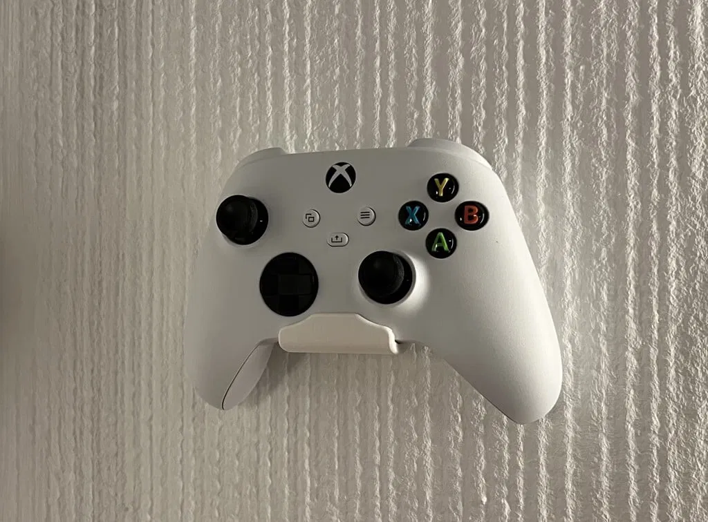 Đây là giá treo tường đơn giản dành cho tay cầm Xbox One X. Có thể dán vào tường bằng băng dính hai mặt.