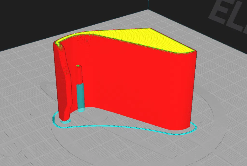 Tôi đã in giá treo này ở tư thế nằm nghiêng, có dùng vật liệu hỗ trợ cho phần gờ căn chỉnh nhỏ. Có thể in được mà không cần vật liệu hỗ trợ, nhưng tôi chưa thử.