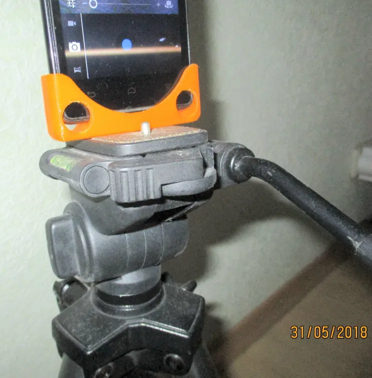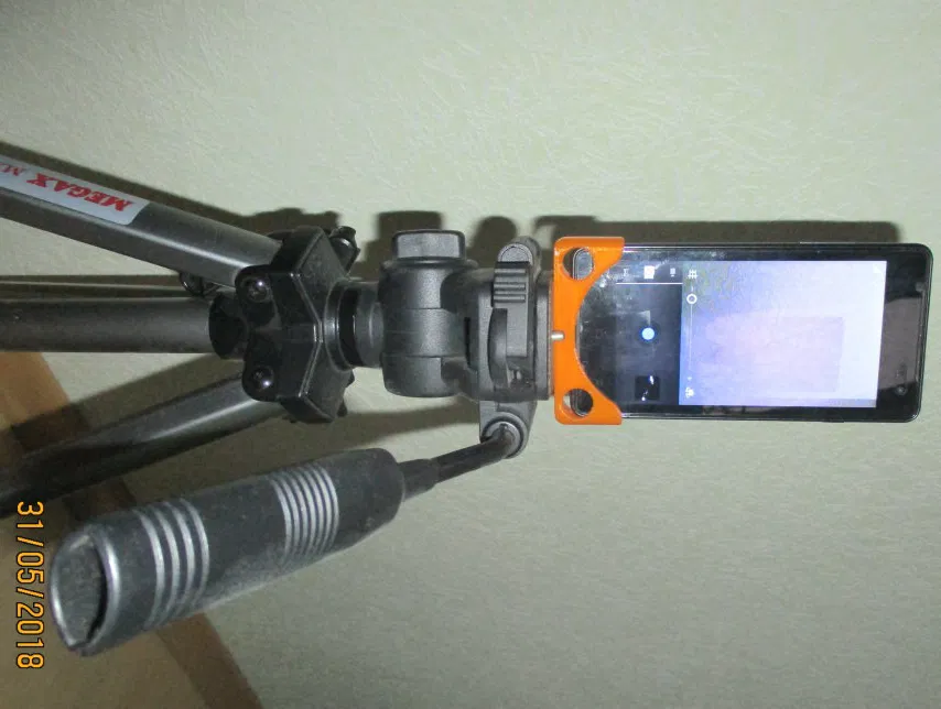 Adapter chân máy ảnh tương thích cho Medion Life P4501 (điện thoại thông minh). Lỗ ở giữa dưới đáy có ren 1/4"-20, là ren tiêu chuẩn của chân máy ảnh. Chất liệu PLA, độ điền đầy 100%. Đã thử nghiệm và hoạt động tốt.