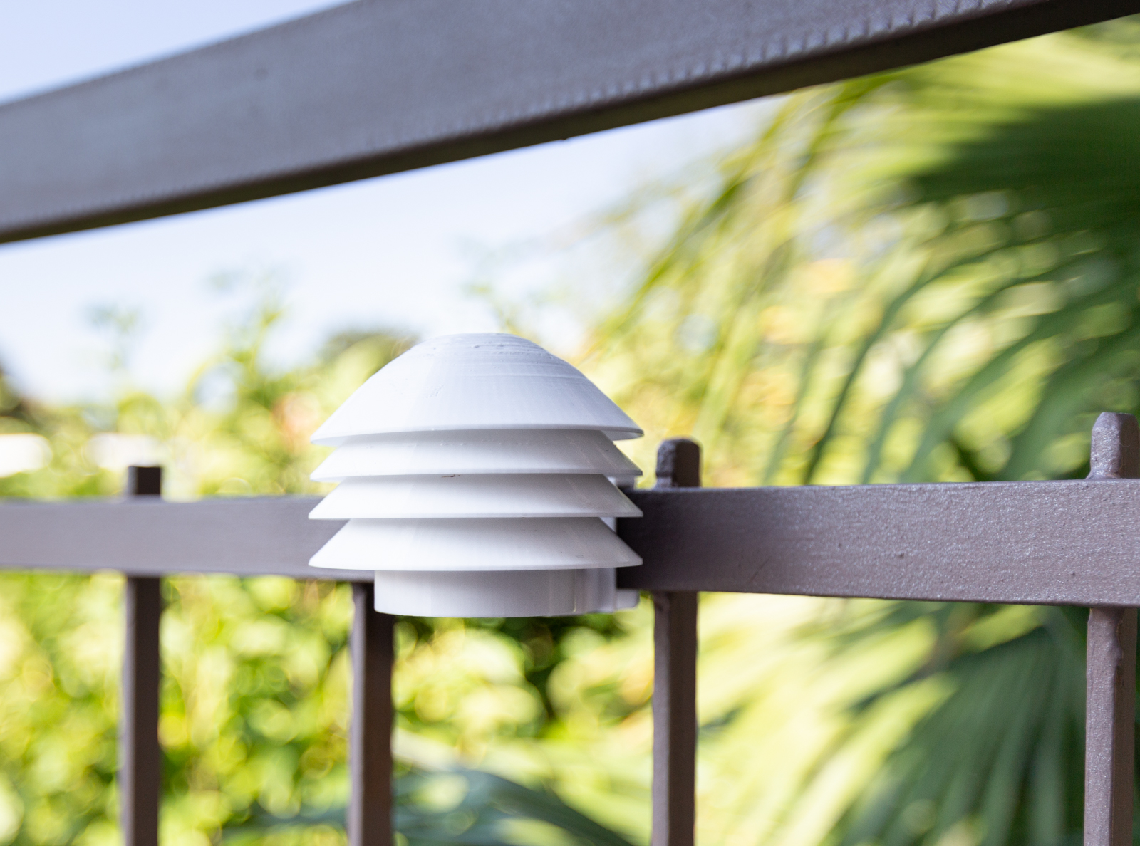 Sự kết hợp giữa các đĩa chắn nắng và khoang bên trong đảm bảo một mức độ thông gió nhất định và tránh cho khí nóng bị tù đọng xung quanh cảm biến. Vỏ bọc bảo vệ cảm biến khỏi ánh nắng trực tiếp, gió và mưa.