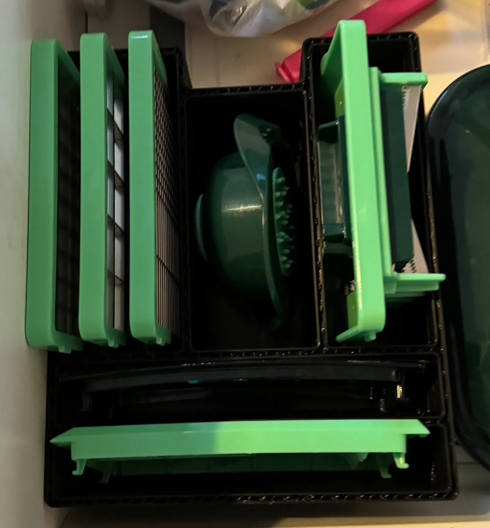 Cái khay / chỗ để đồ cho hết mấy phụ kiện Genius Nicer Dicer Chef của bạn nè.