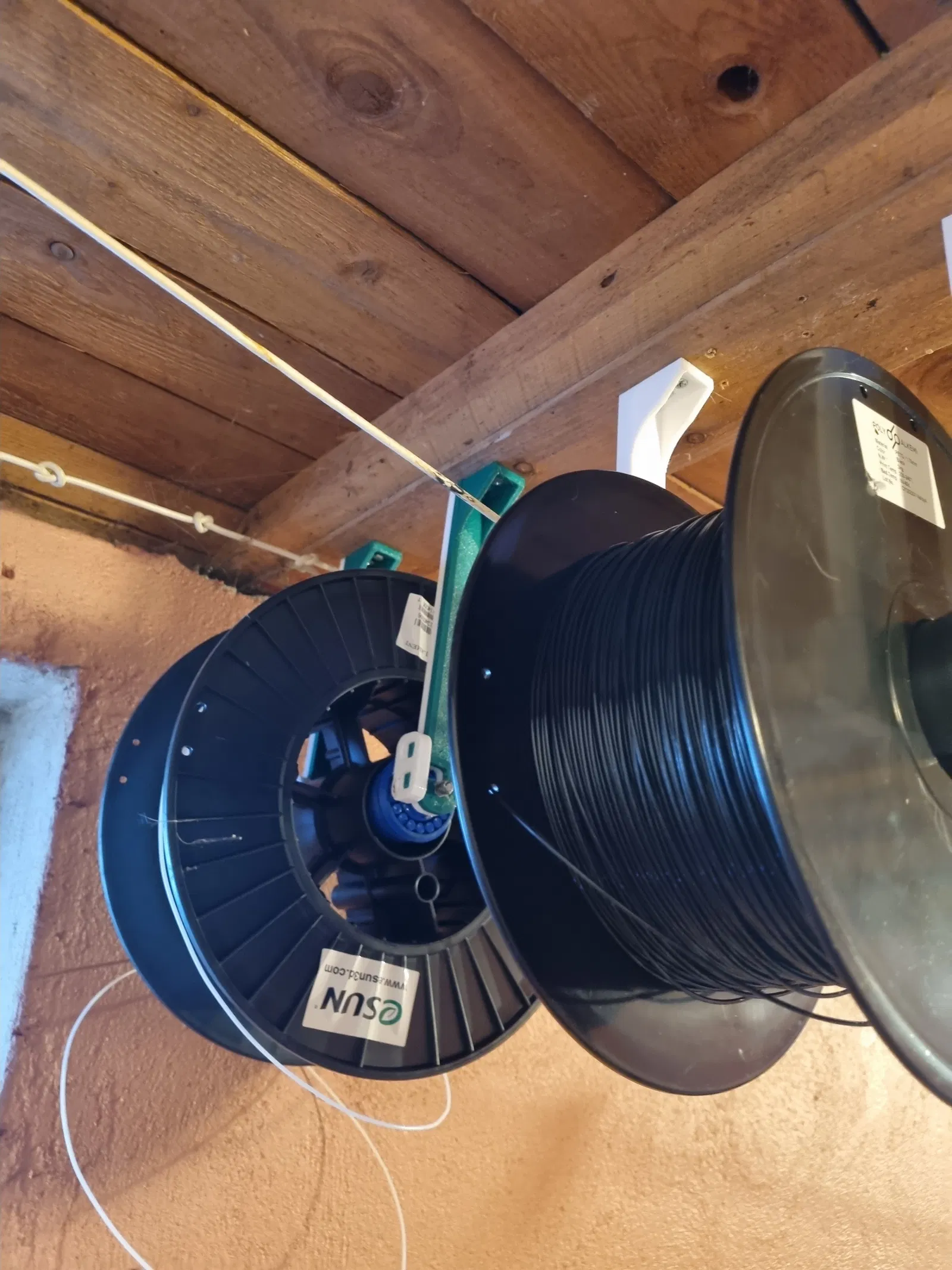 Giá đỡ cuộn dây tóc gắn trên trần. Có 2 kích cỡ, một cái lớn để vừa mọi thứ và một cái nhỏ hơn cho các cuộn nhỏ hơn. Ngoài ra còn có một cái kẹp để tăng khả năng mang tải và khóa nó lại. Nếu muốn đối xứng, bạn có thể phản chiếu chúng trong phần mềm cắt lớp (slicer).