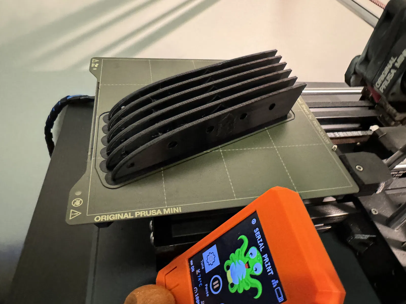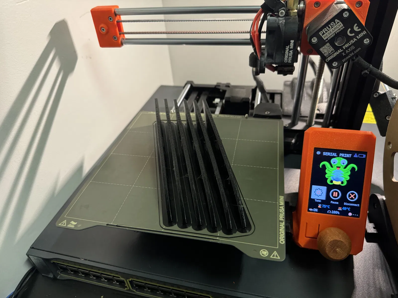 Nếu muốn link TinkerCad thì cho tui hay nha. In với mặt phẳng úp xuống, không cần support. Độ cao lớp in 0.2mm là ổn rồi, nhưng tui cuối cùng in 0.15mm để cái logo cho nó đẹp hơn. Để vừa trên Prusa Mini, chỉ cần xoay 45°, hoặc 22.5° để in nhiều cái cùng lúc. Tui đã dùng PLA và nó chạy phà phà.