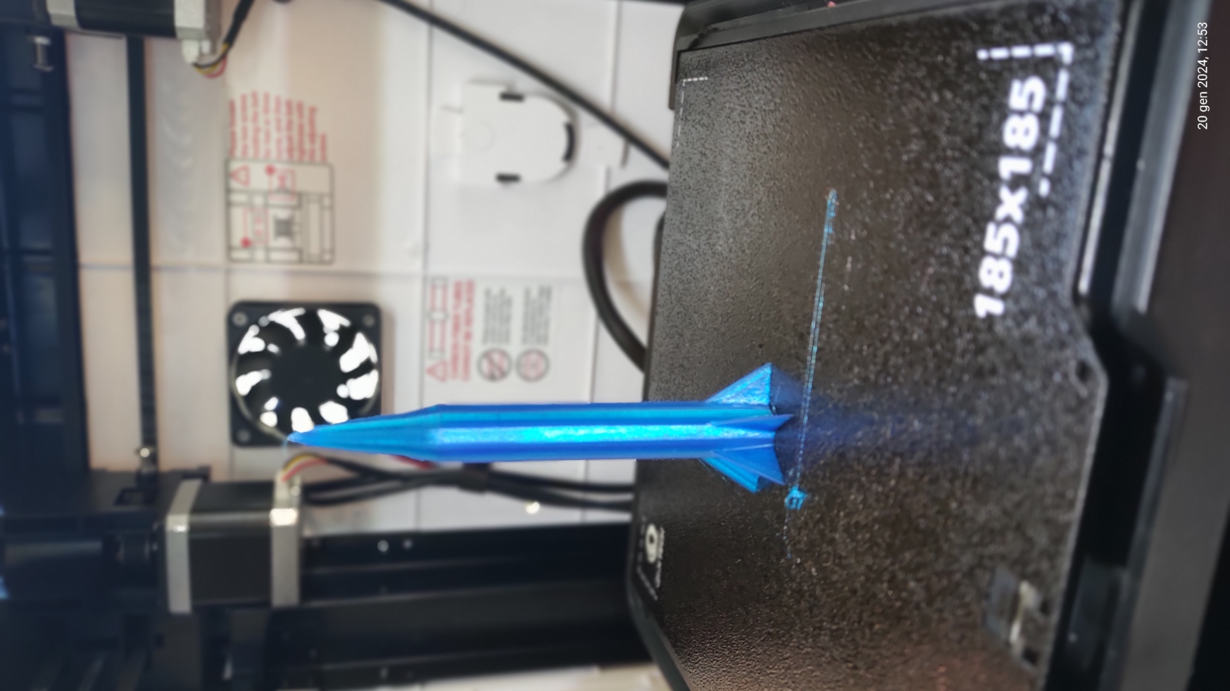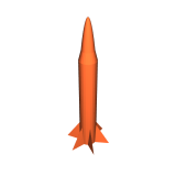 Một tên lửa rỗng, có lỗ để gắn pin và đèn LED. In bằng TPU trong suốt.