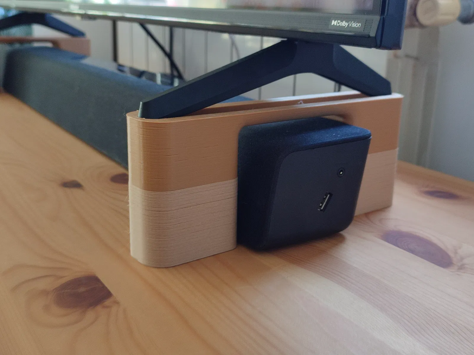 Cái này tui làm ra để đặt cái soundbar cho nó gọn á mà, chỗ tui nó không có vừa, thiết kế xong giờ thì để chung được hết trơn. Tui có up file Fusion360 lên đó, anh em cần thì chỉnh sửa theo ý mình nha.