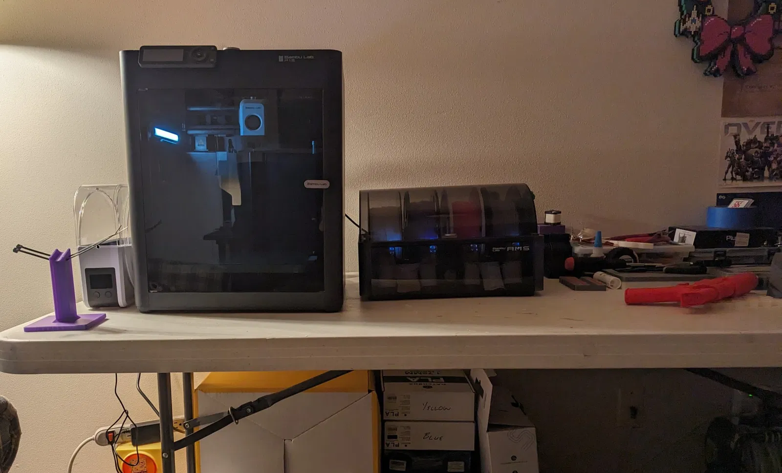 Bàn nhựa mà tôi sử dụng cho các công việc in 3D hoạt động tốt nhưng tôi đã nhận thấy một chỗ lõm kỳ lạ nơi P1S nghiêng sang bên phải và AMS nghiêng sang bên trái. Tôi đã quyết định mô hình hóa một cái gì đó sẽ đặt dưới bàn và đẩy lên chỗ đó.