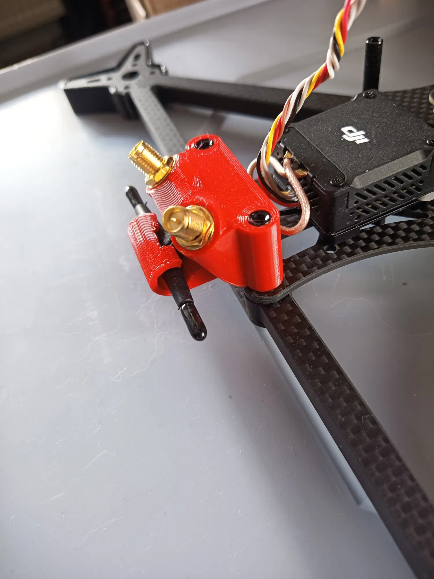 Chân đế này được thiết kế để gắn hai đầu nối SMA và một ăng-ten ExpressLRS ở phía sau cho các dòng drone AOS 7 và AOS 5. Bạn cần cắt hai mảnh nhỏ trên ống ăng-ten ExpressLRS để có thể lắp đặt vừa vặn.