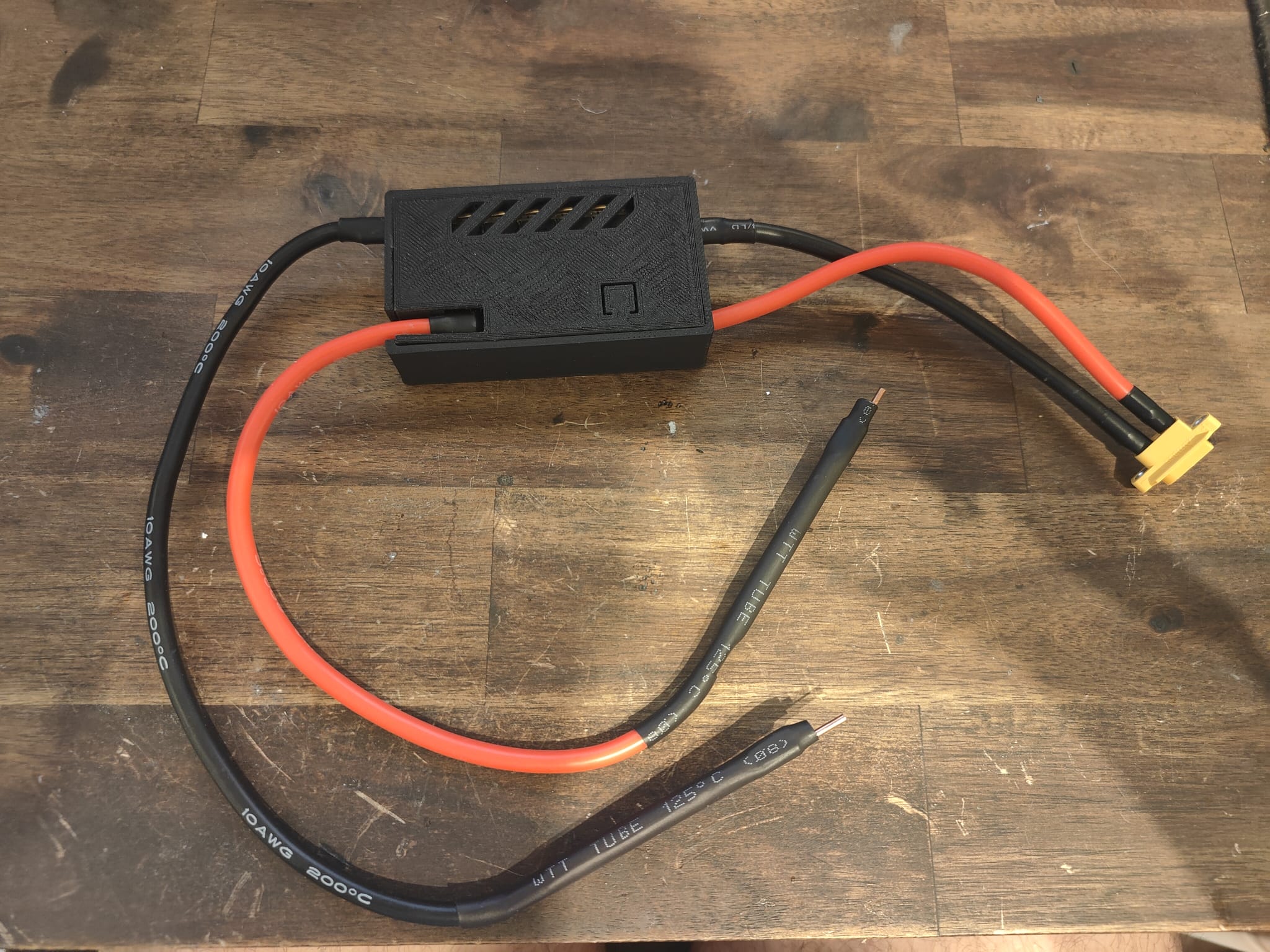 Hàn tụ điện (Capacitor) và còi báo (buzzer) ở mặt dưới của PCB. Lưu ý chiều phân cực (+/-). Gắn các đầu nối cáp (Cable Shoes) thẳng hàng với bo mạch. Cổng "+in" được gắn vào mặt dưới của bo mạch.